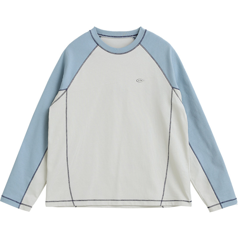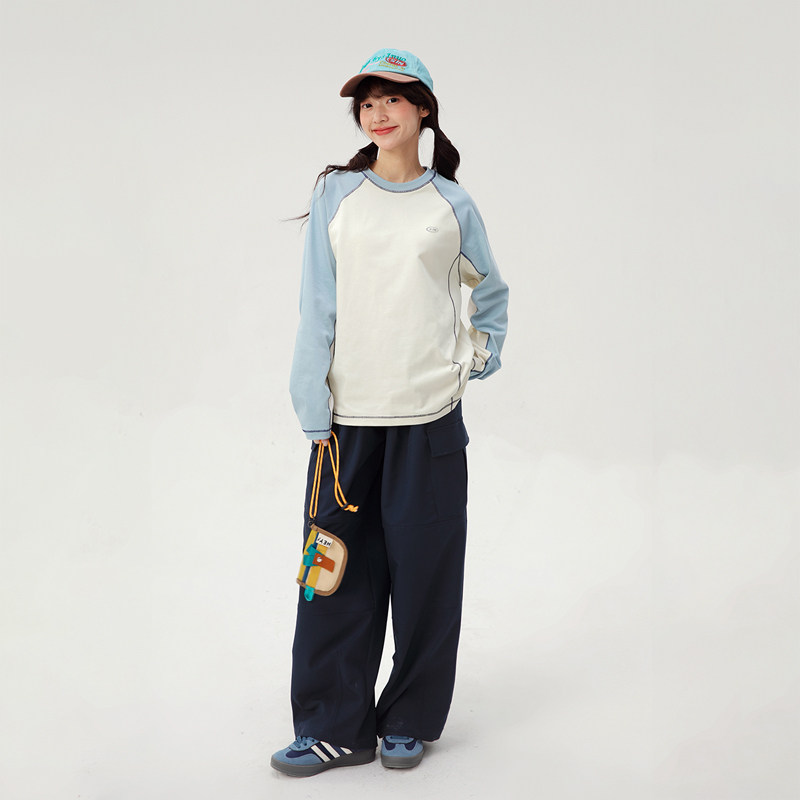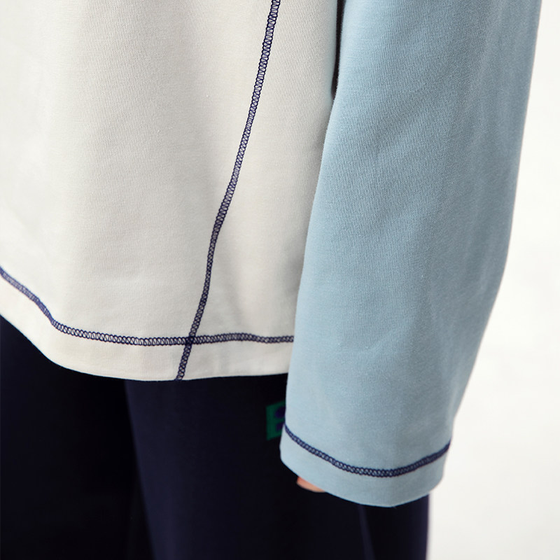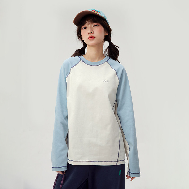 诺诺公主S1N 初中生撞色T恤2026春季青少年大童韩系长袖休闲上衣