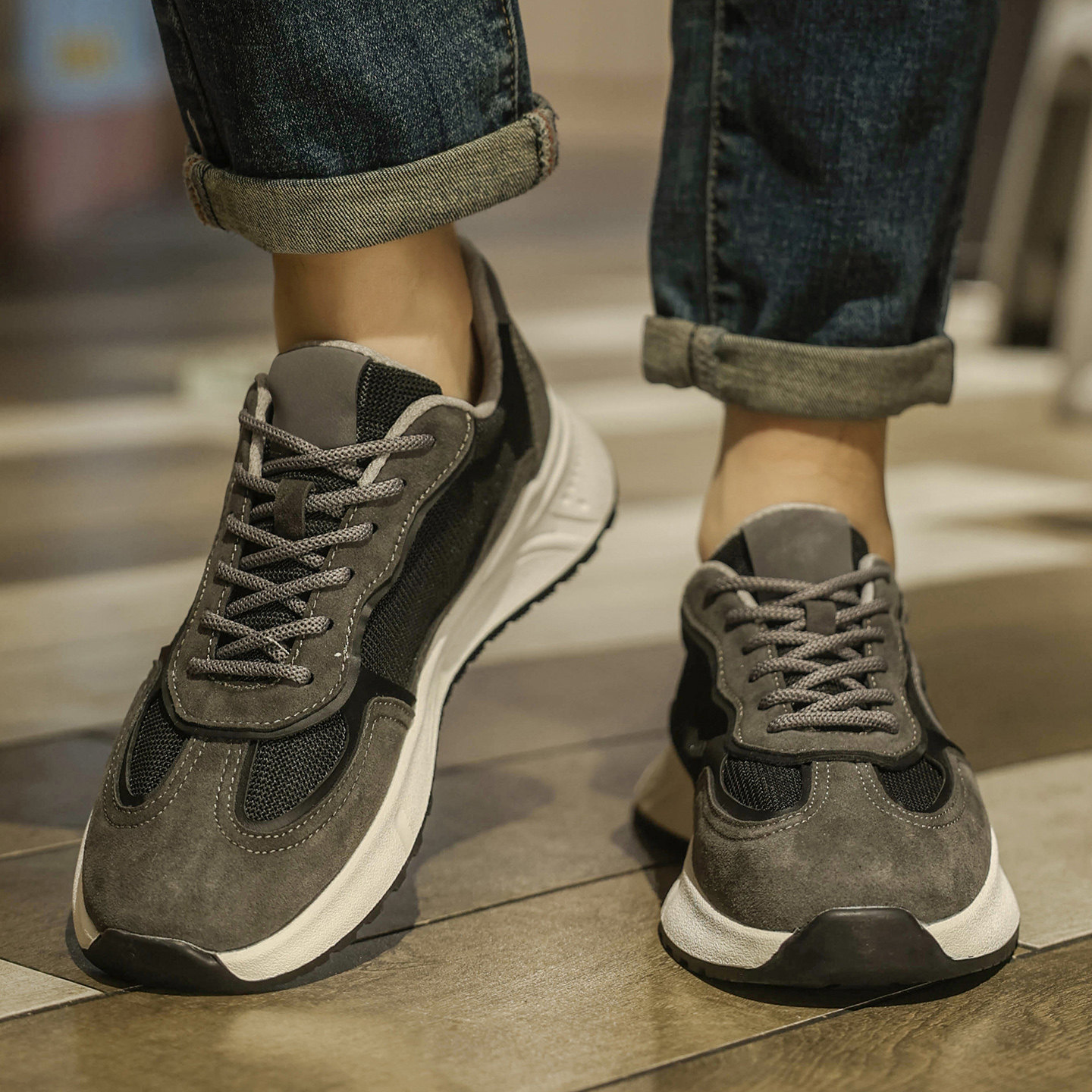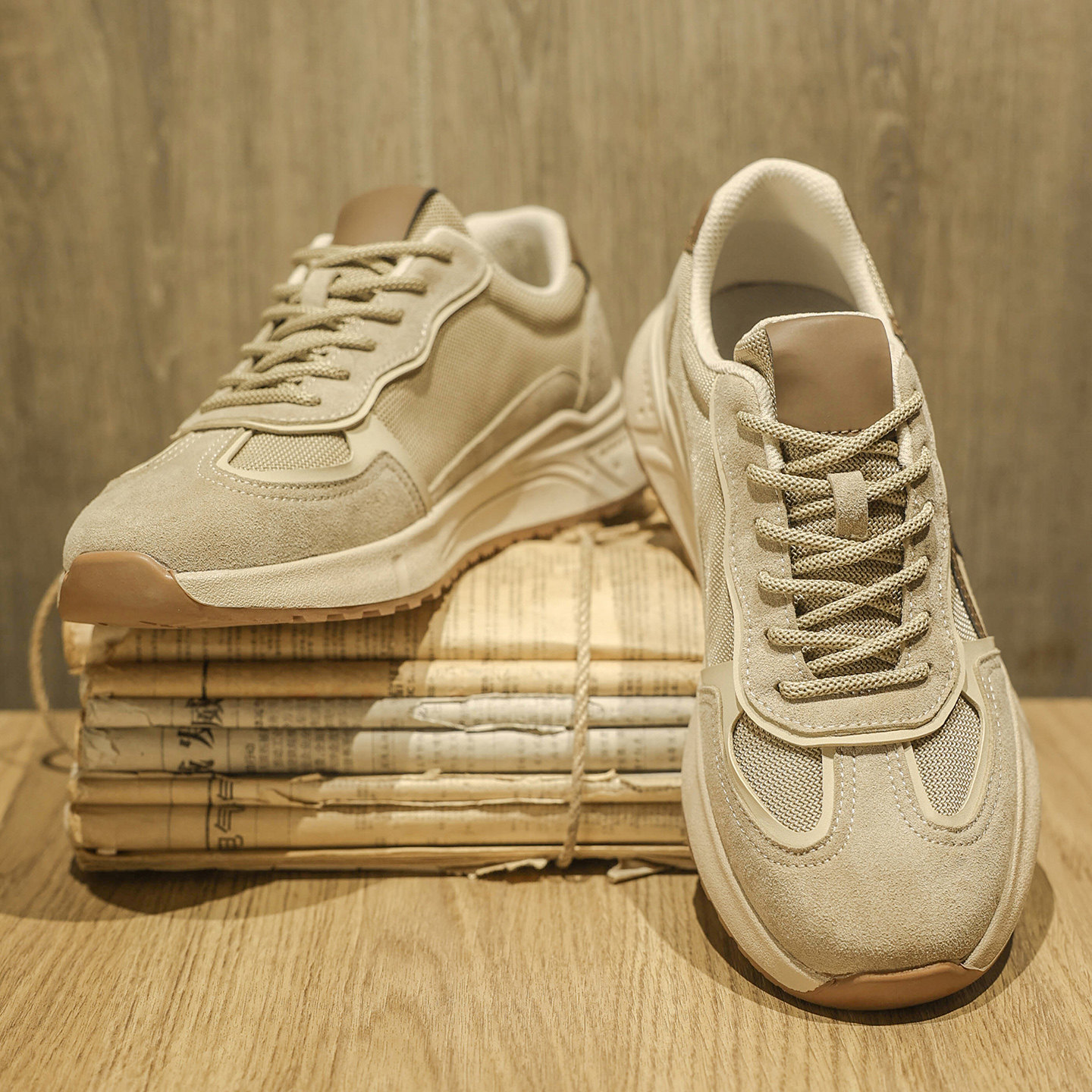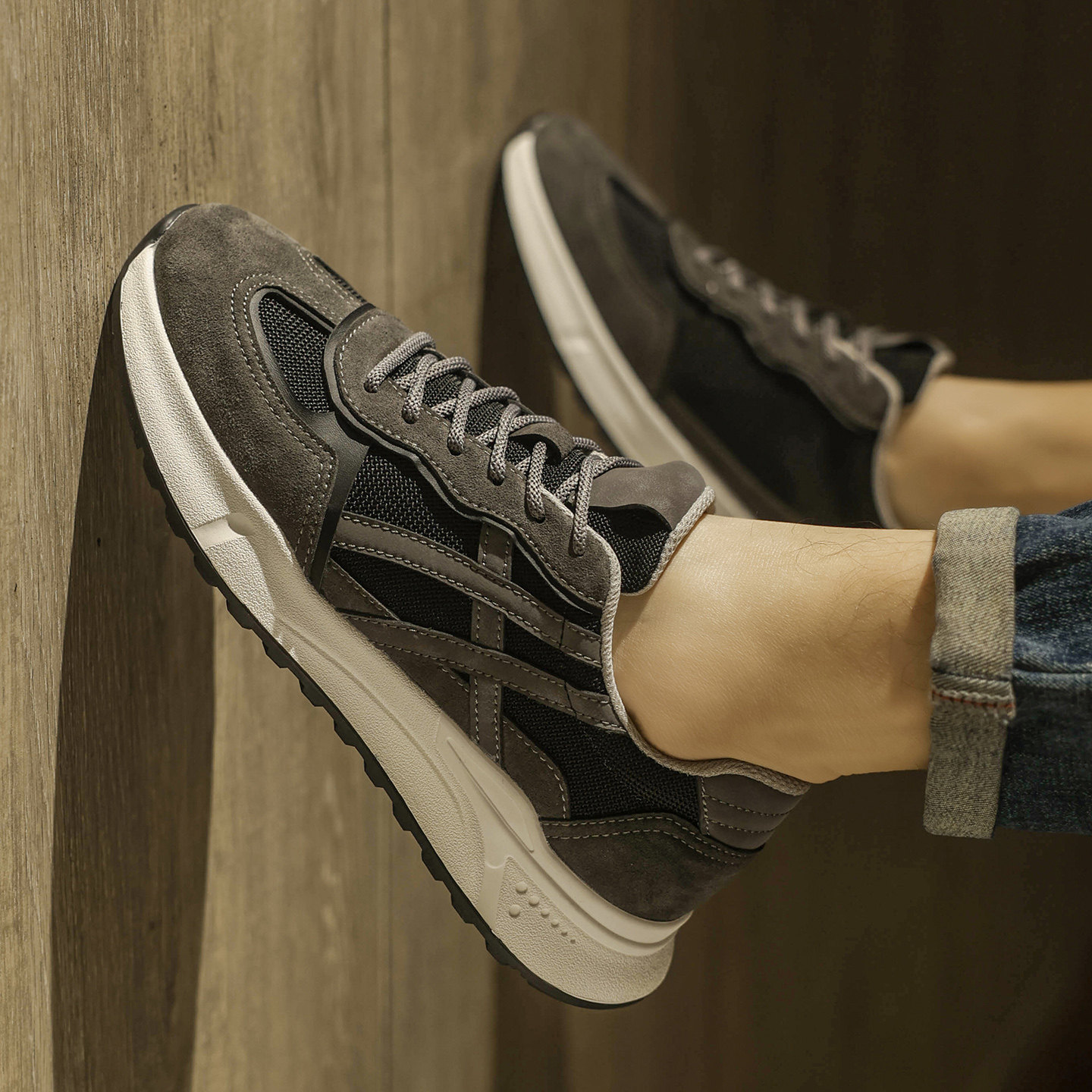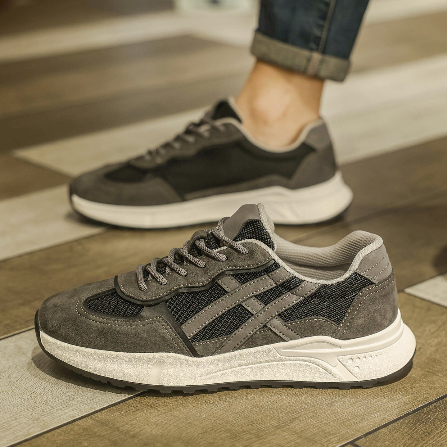 阿甘男鞋春季透气网布厚底运动休闲鞋男款春款复古通勤软底潮鞋子