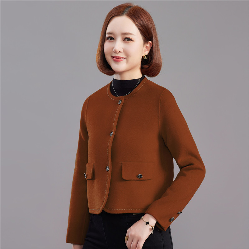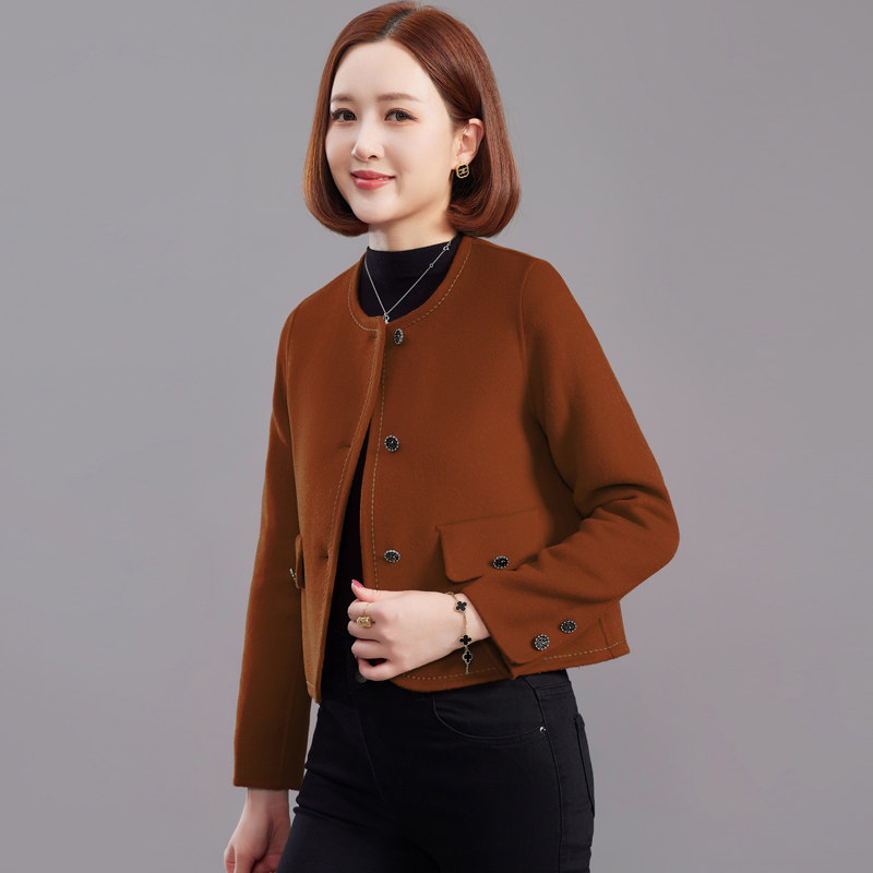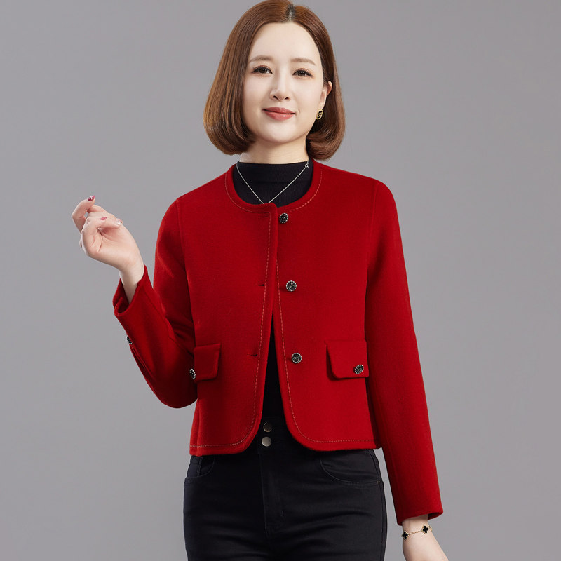 中年妈妈双面羊毛大衣女小个子短款高级感秋冬羊绒小香风毛呢外套