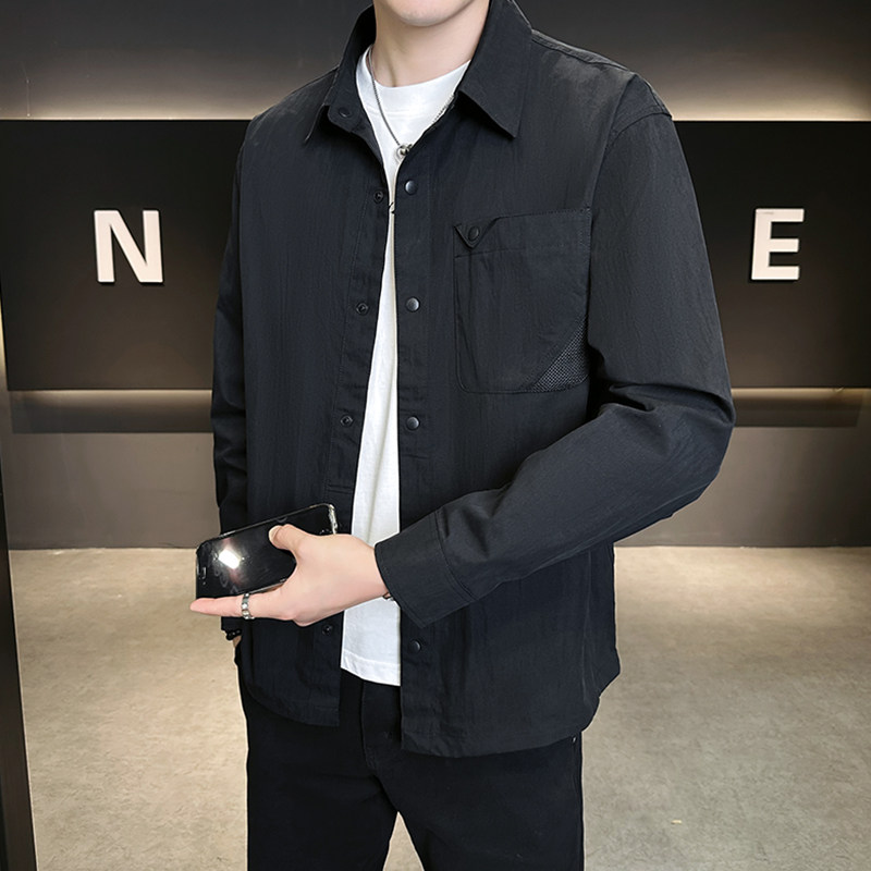 311线报网描述:长袖衬衫男士外套,休闲薄款秋装透气外套
