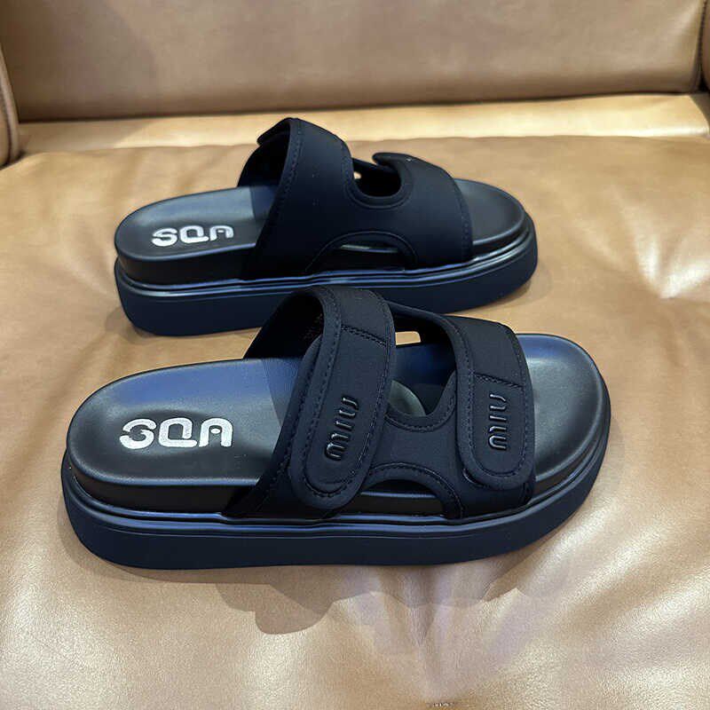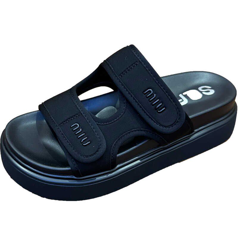 拖鞋女外穿夏高级感轻便不累脚百搭魔术贴厚底增高休闲沙滩鞋凉拖