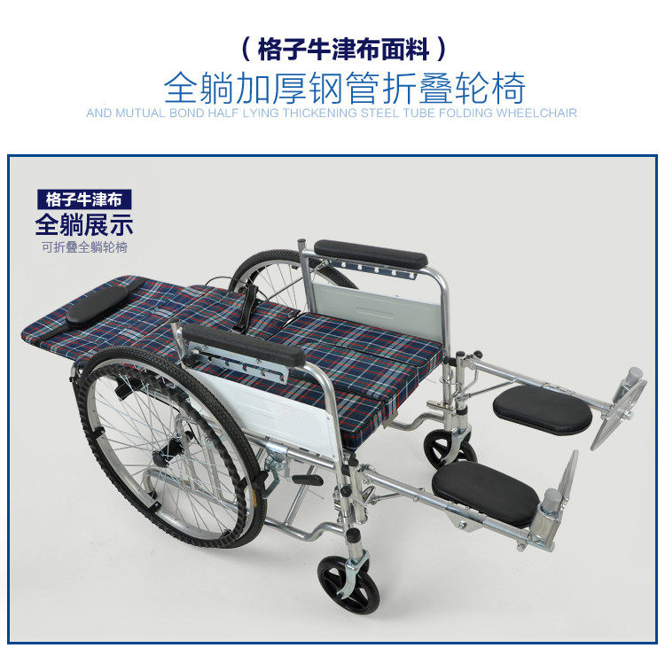 大华社加厚钢管全躺轮椅折叠轻便带坐便老人便携轮椅车铝合金圈