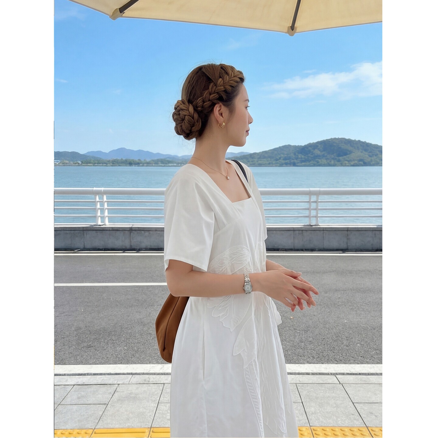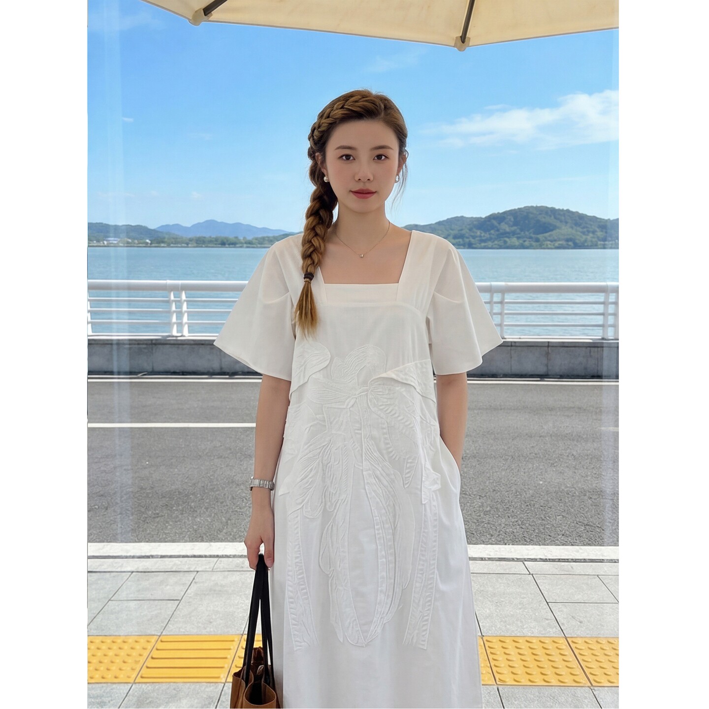 奢华2026夏季新款显瘦小个子穿搭宽松遮肉慵懒感白色短袖连衣裙女