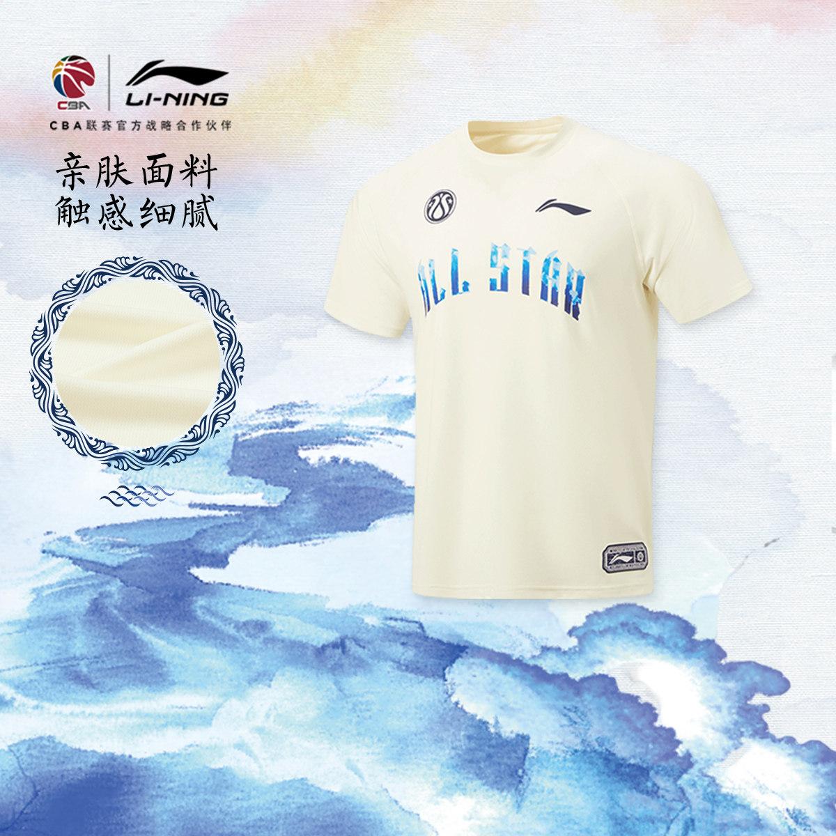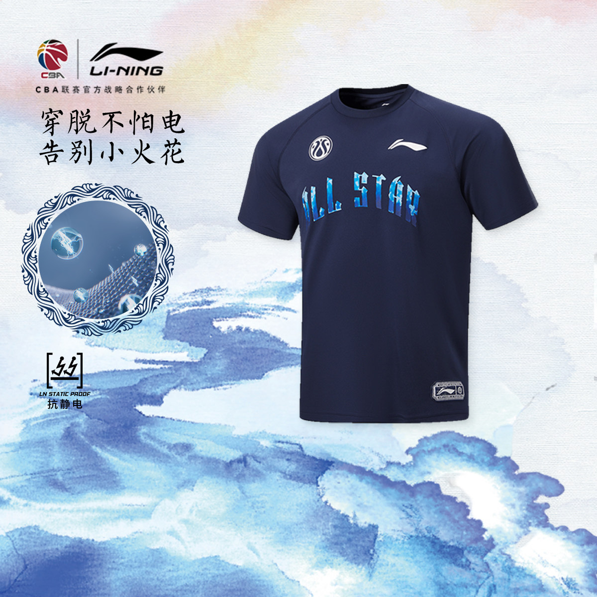 李宁2026CBA全明星系列短袖T恤男士圆领宽松上衣夏季针织运动服