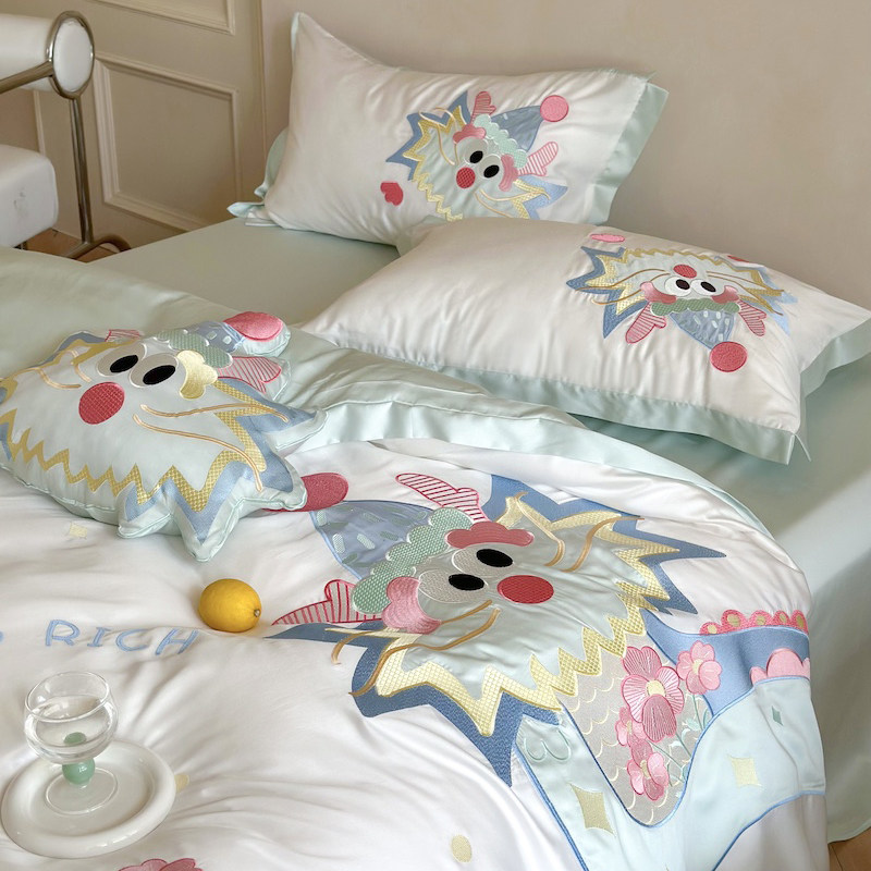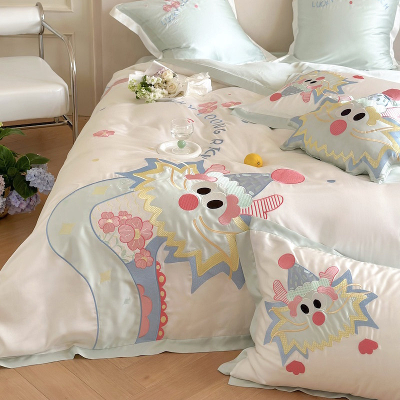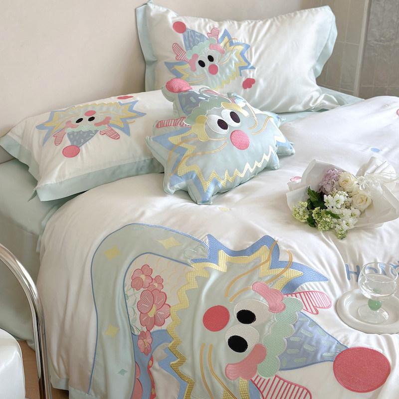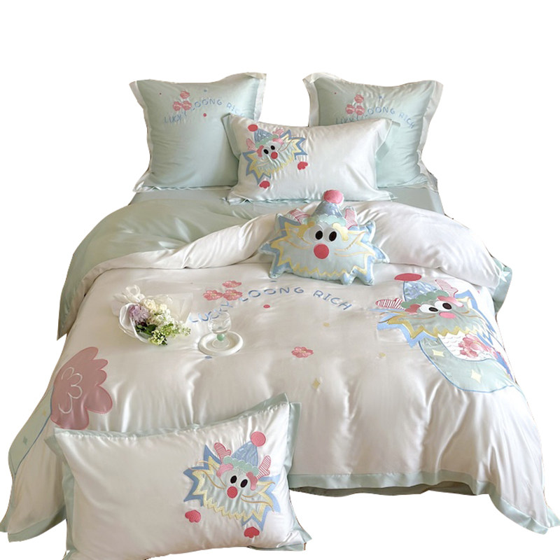 可爱卡通小青龙刺绣双面60支天丝四件套冰丝被套丝滑裸睡床上用品