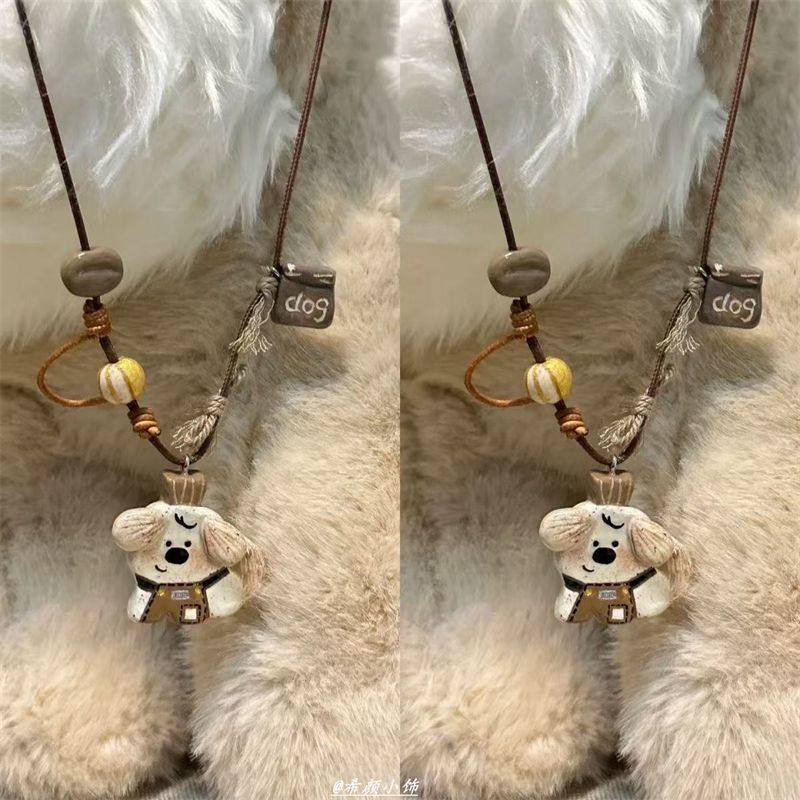 小狗咖啡师调皮可爱百搭项链女新款卫衣链小众设计编织颈链配饰