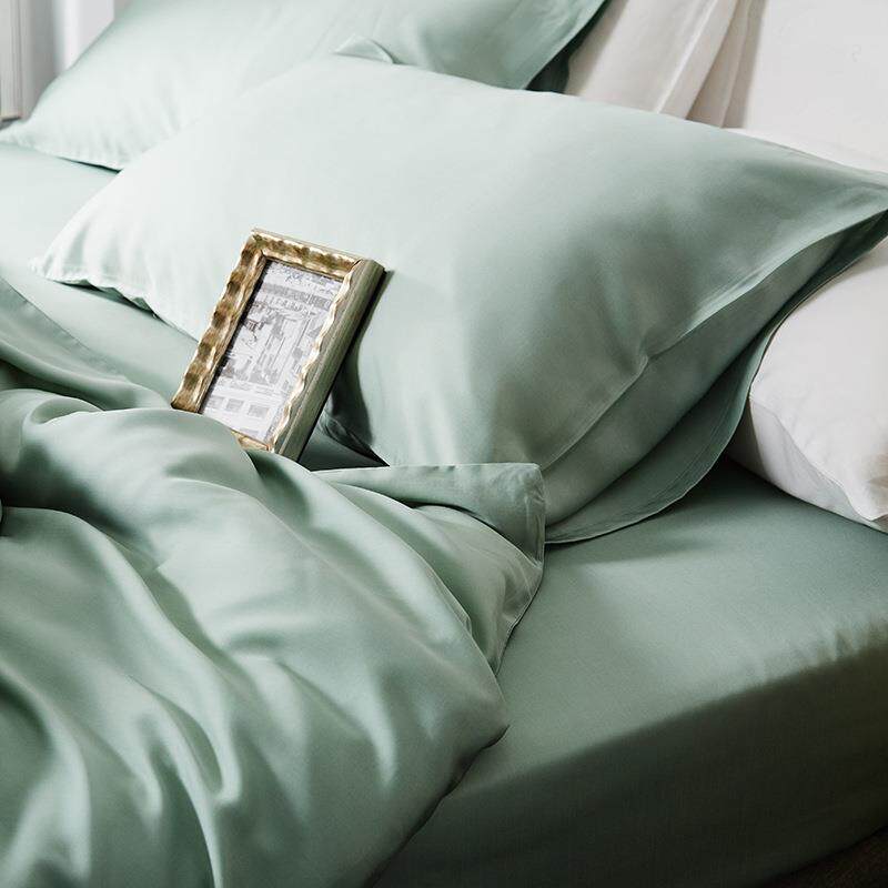 丝滑纯色60支双面天丝四件套 绿色床上用品冰丝被套裸睡夏1.8