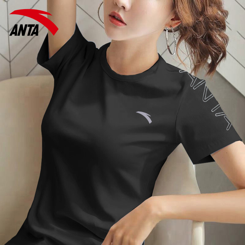 安踏冰丝短袖T恤女2026新款夏季女士黑色透气速干女装旗舰店上衣