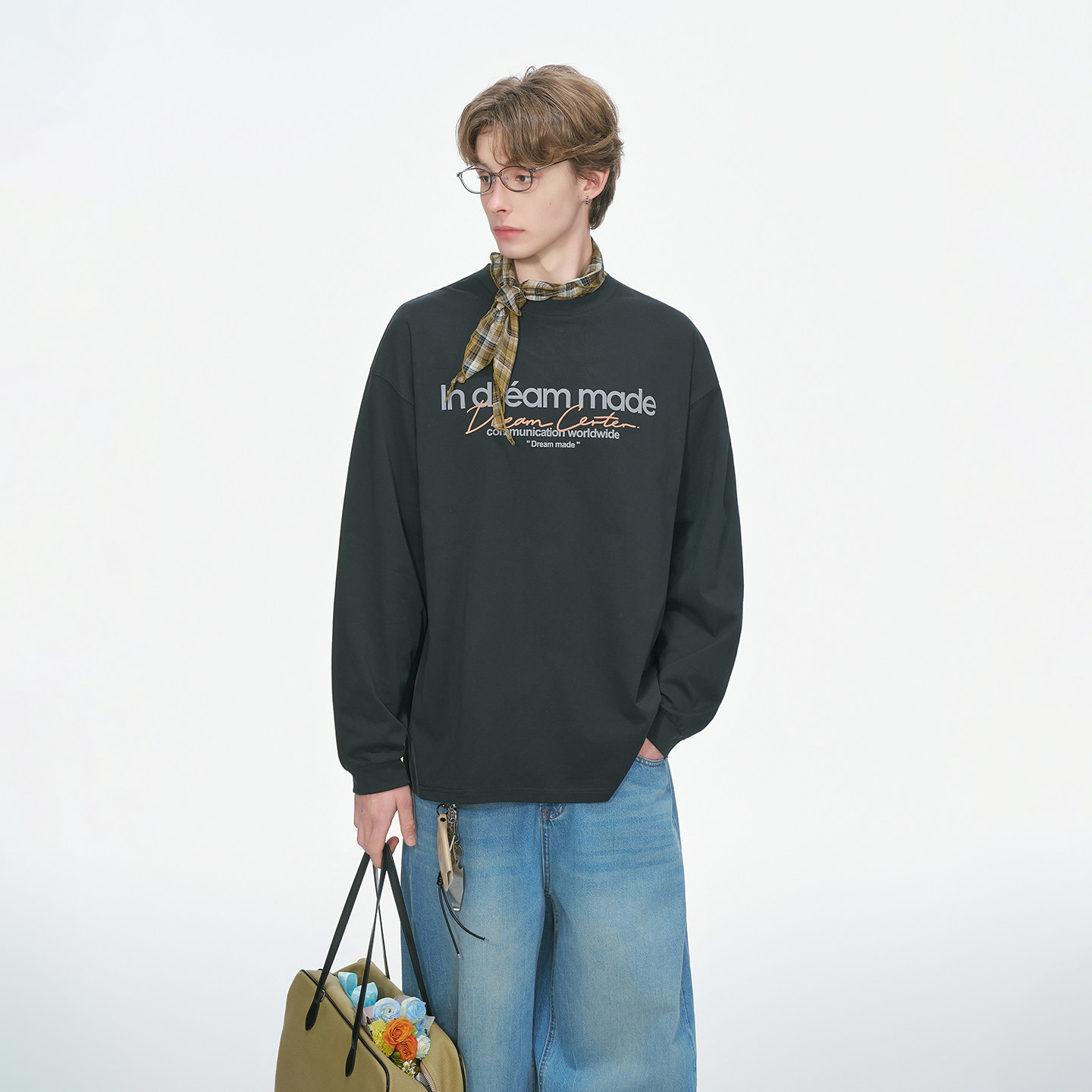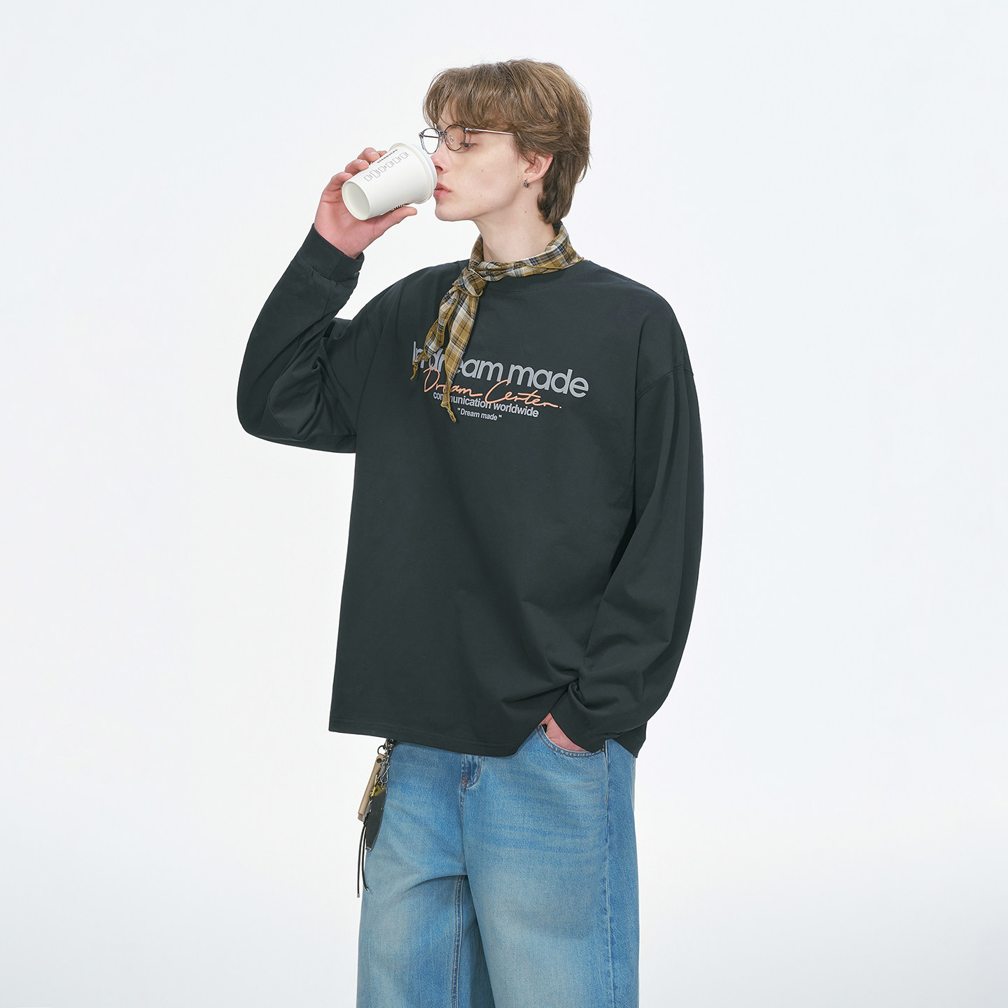 Dreammade美式重磅印花长袖t恤男款春秋季休闲打底衫潮牌男生上衣