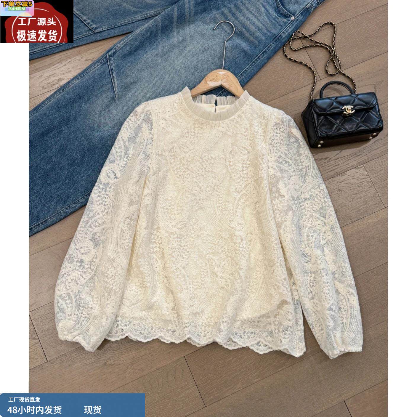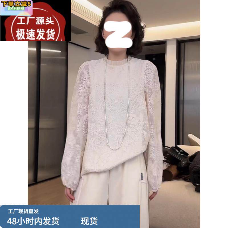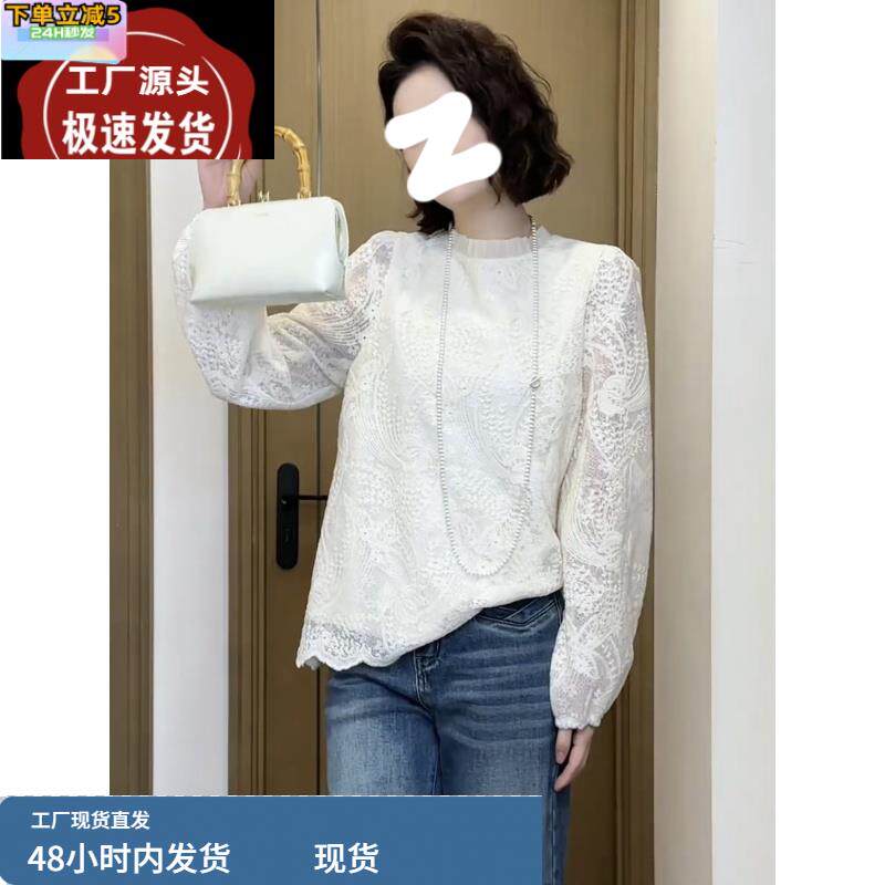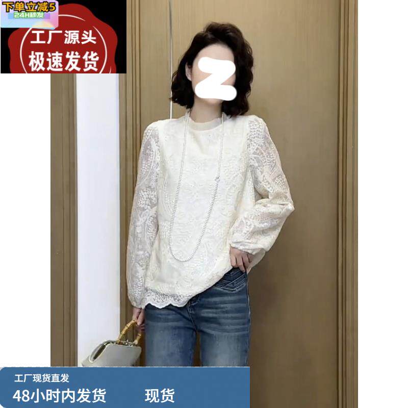 提花蕾丝木耳上衣2025春季大码胖MM白色高级洋气刺绣女款别致衬衫