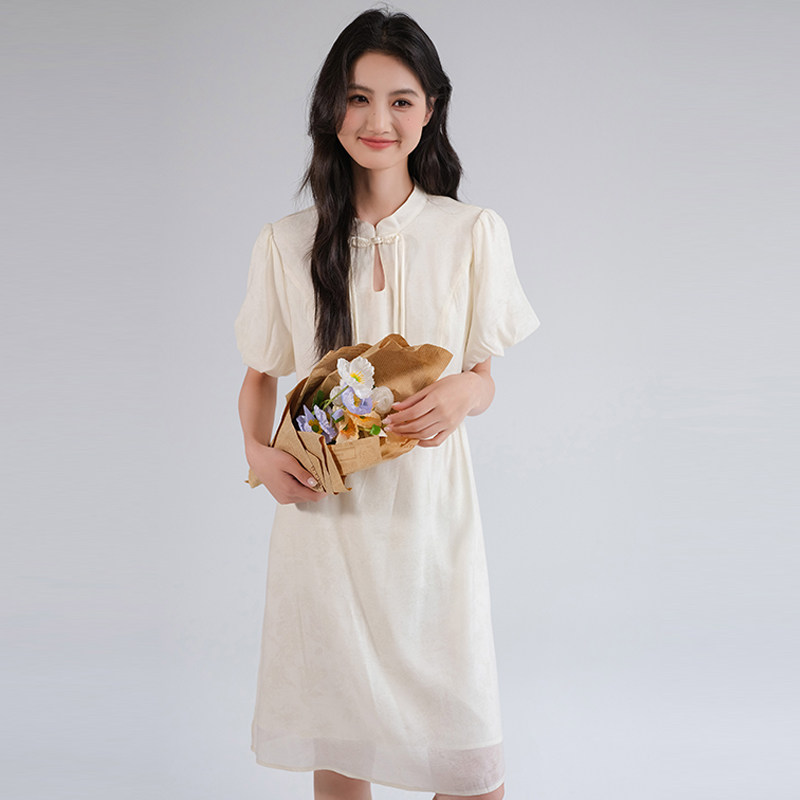 311线报网描述:新中式国风连衣裙收腰显瘦立领改良旗袍裙子