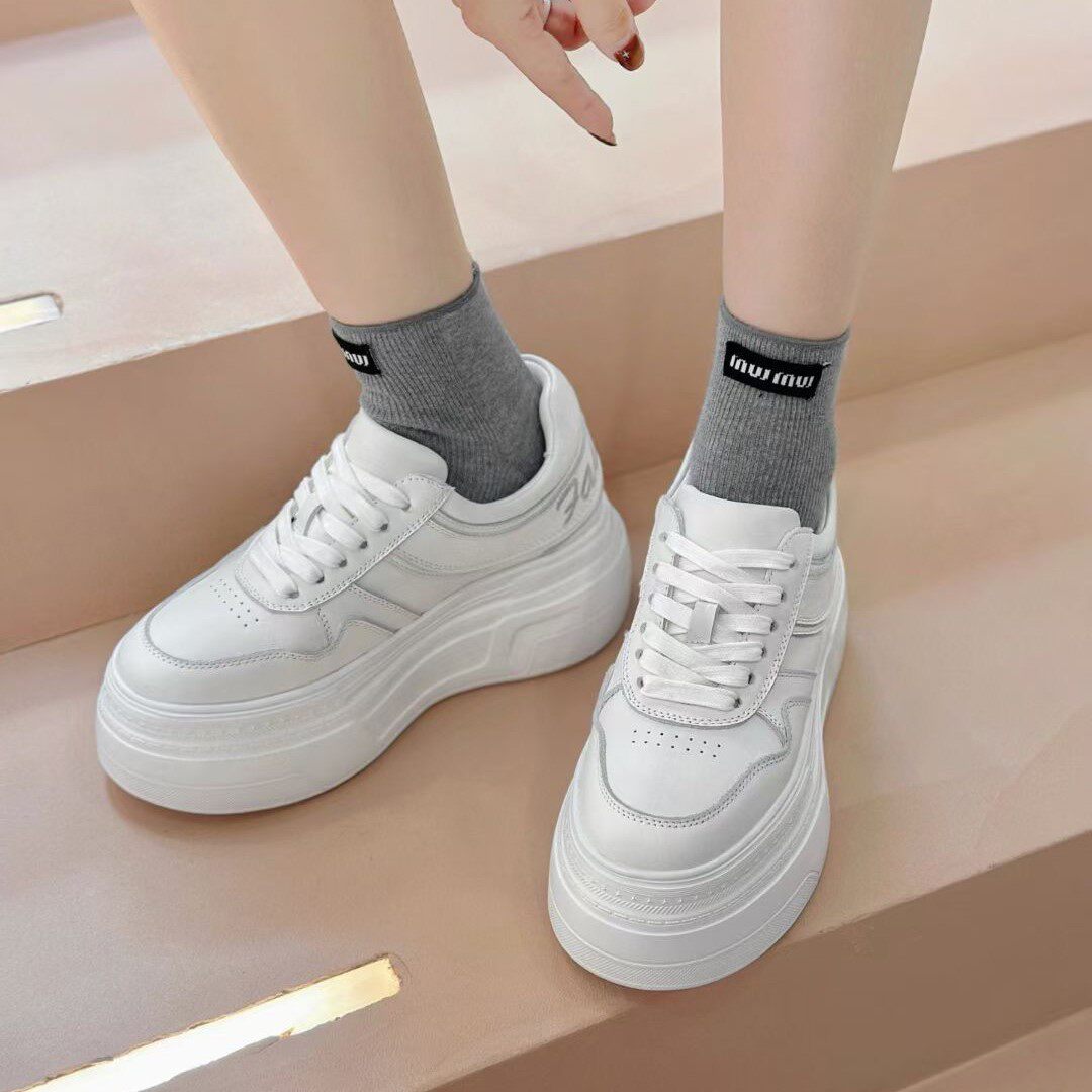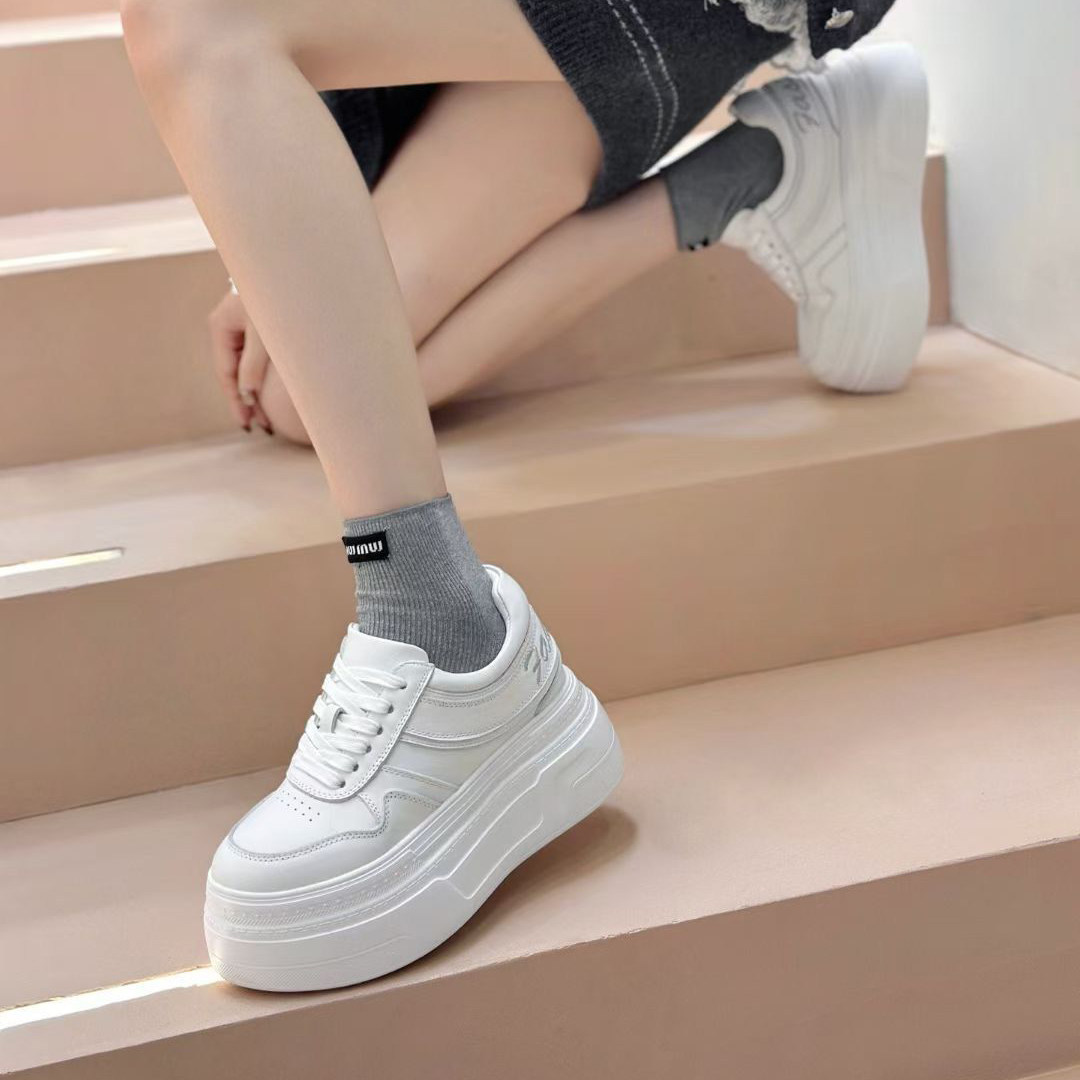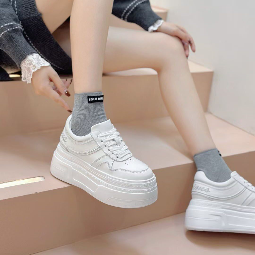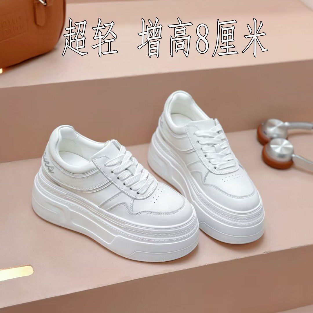 网红小个子女鞋隐形内增高8cm小白鞋真皮2025秋新款厚底松糕单鞋