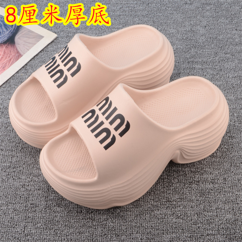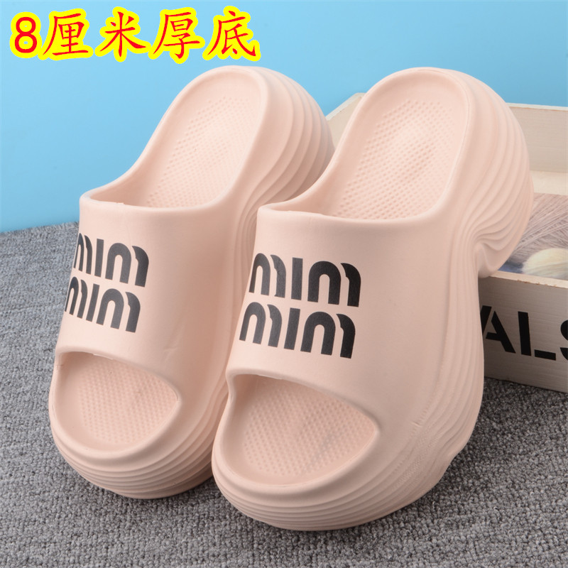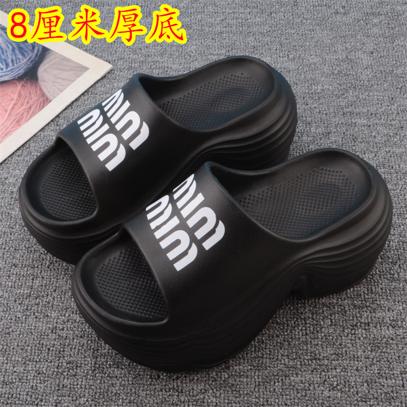 厚底一字拖女夏增高8厘米防滑外穿百搭少女风小个子松糕跟凉拖鞋