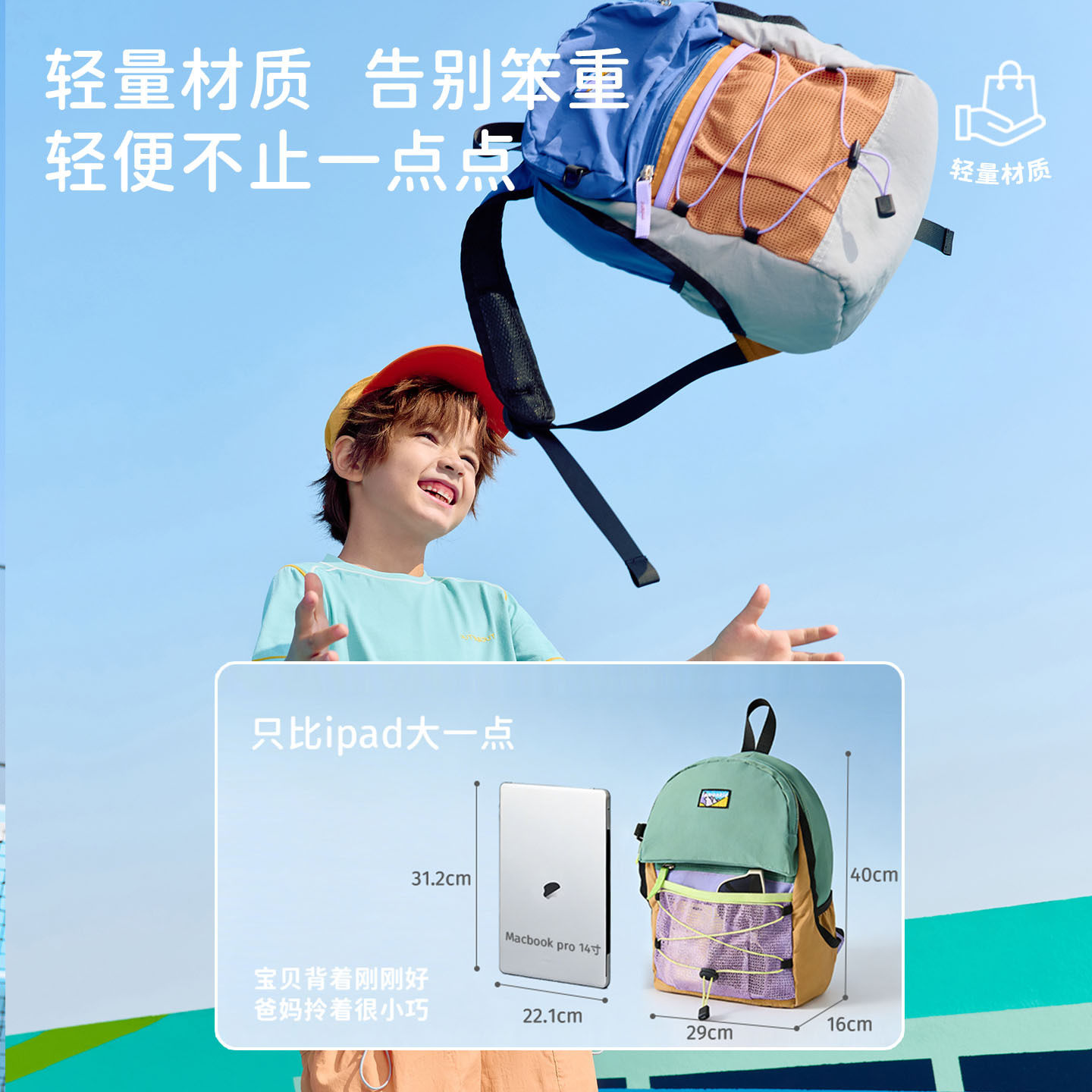 儿童撞色双肩包女休闲书包户外运动风登山包轻便旅游防泼水背包