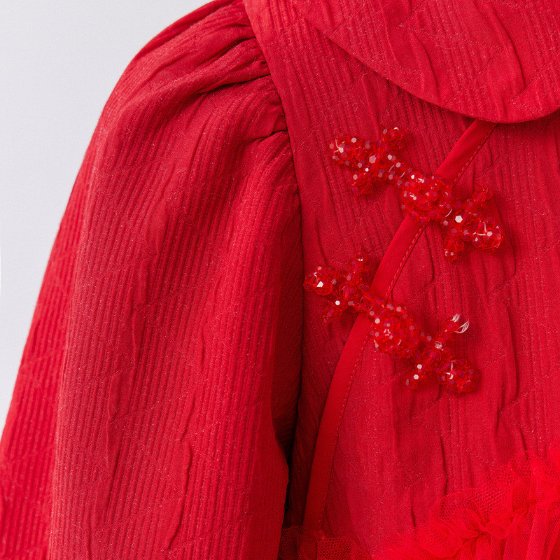 311线报网描述:新年汉服感网纱礼服,水晶纽扣精致高级。