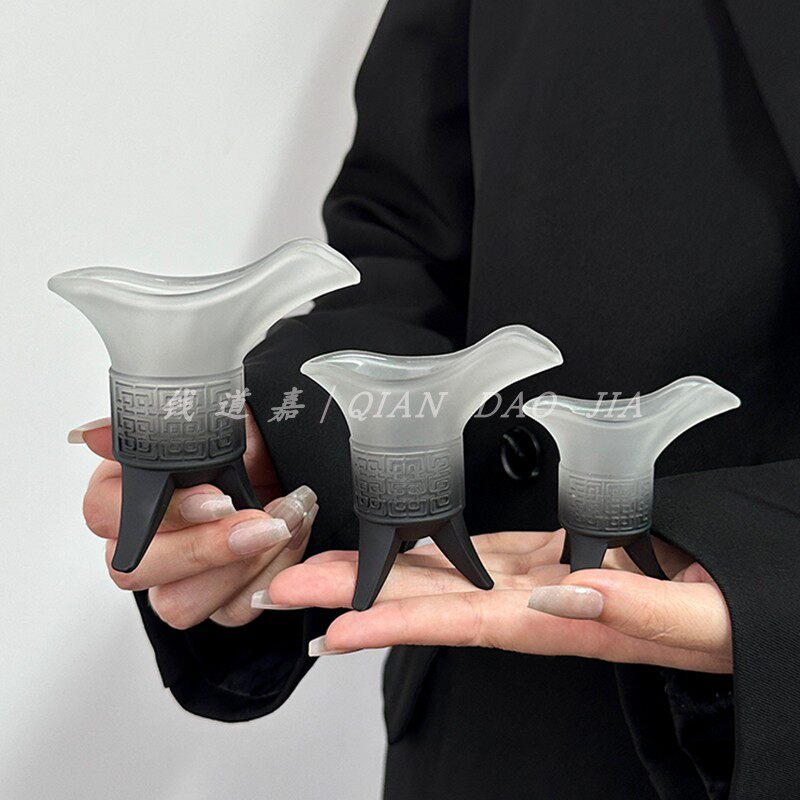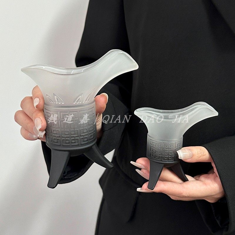 磨砂渐变黑帝王杯创意仿古爵杯家用复古秦始皇奶茶杯古代三足杯子