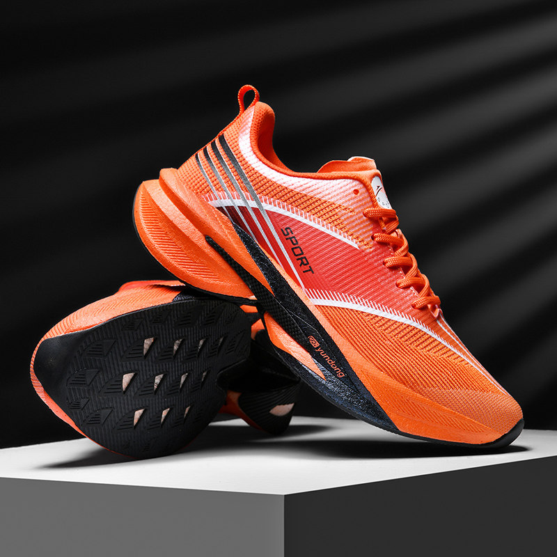 男鞋夏款2025新款软底减震运动鞋初中学生桔色中考体育专用跑步鞋