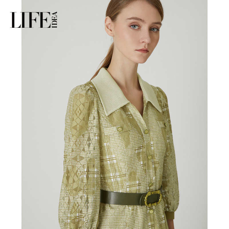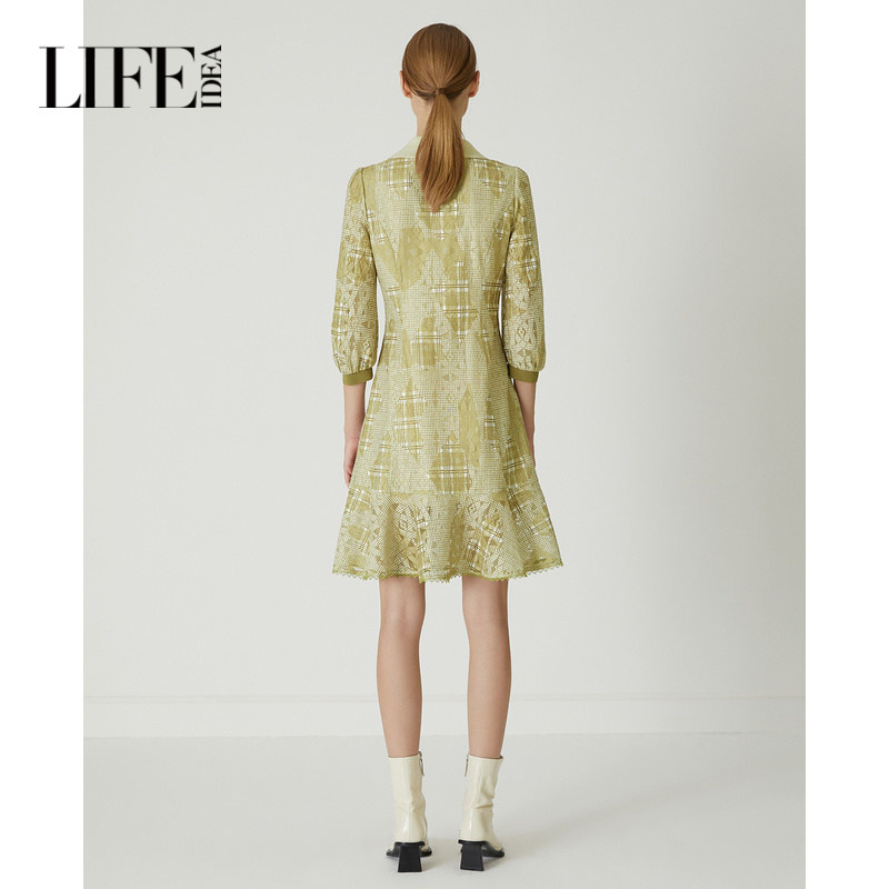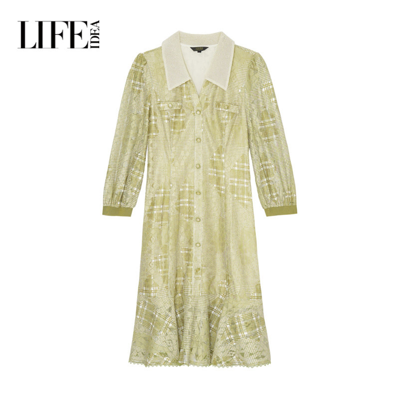 莱芙艾迪儿品牌女装夏季新款裙子中长袖衬衫蕾丝连衣裙1E1L94013