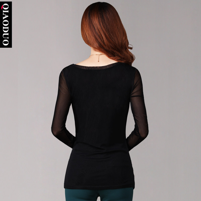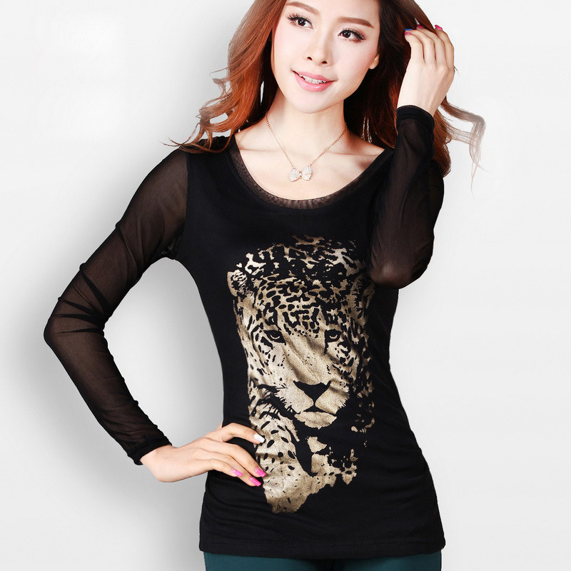 2026春季新款打底衫女韩版黑色上衣大码长袖外穿内搭洋气网纱t恤