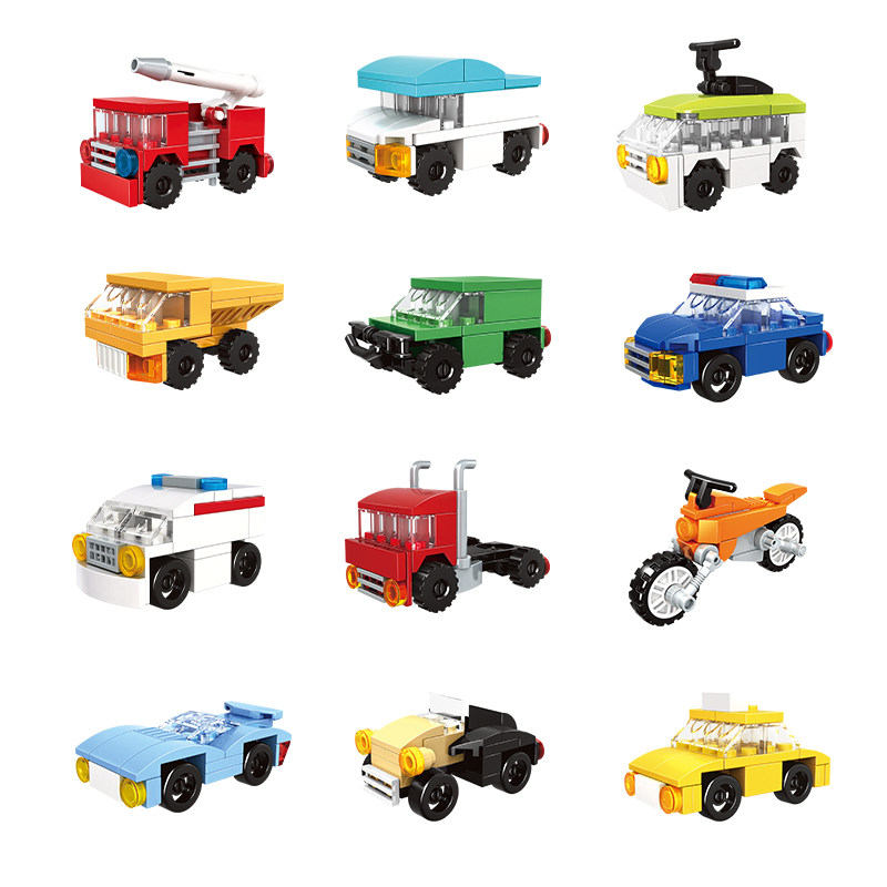 沃马积木城市汽车消防车模型小汽车儿童益智力拼装男孩子拼图玩具