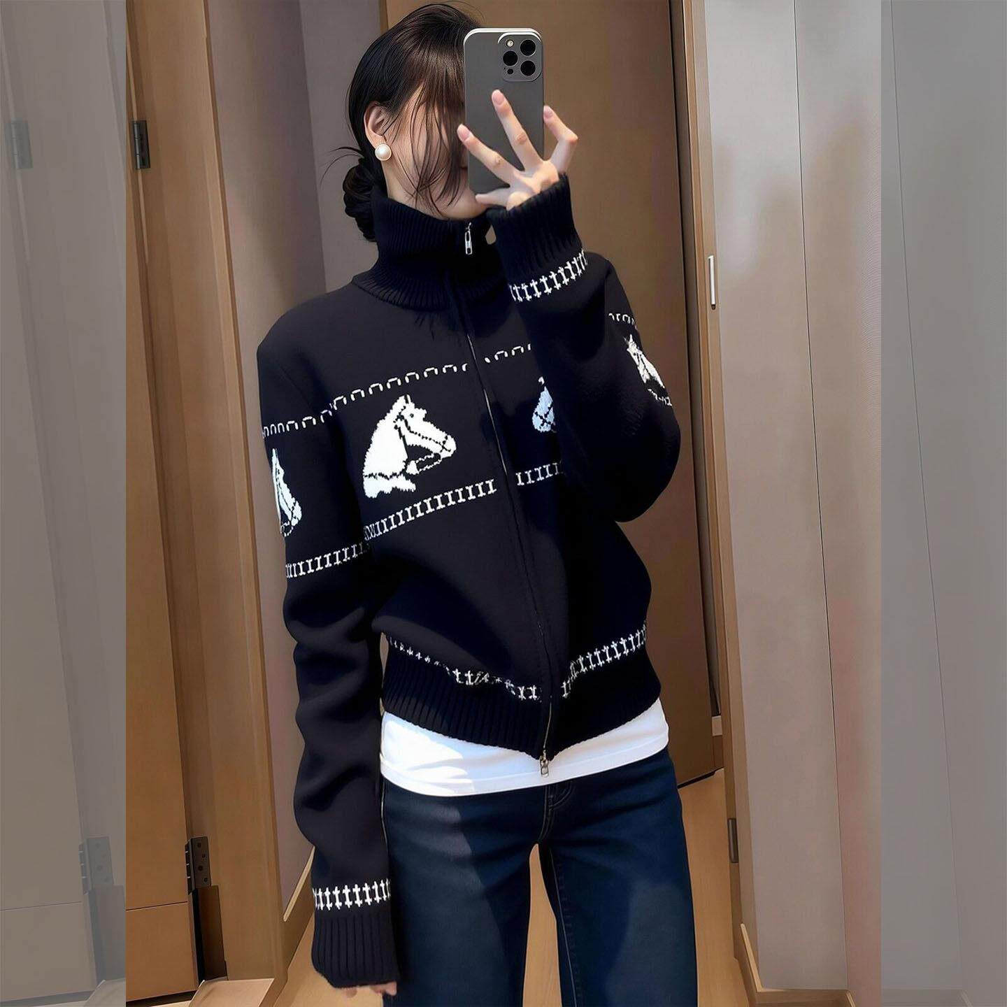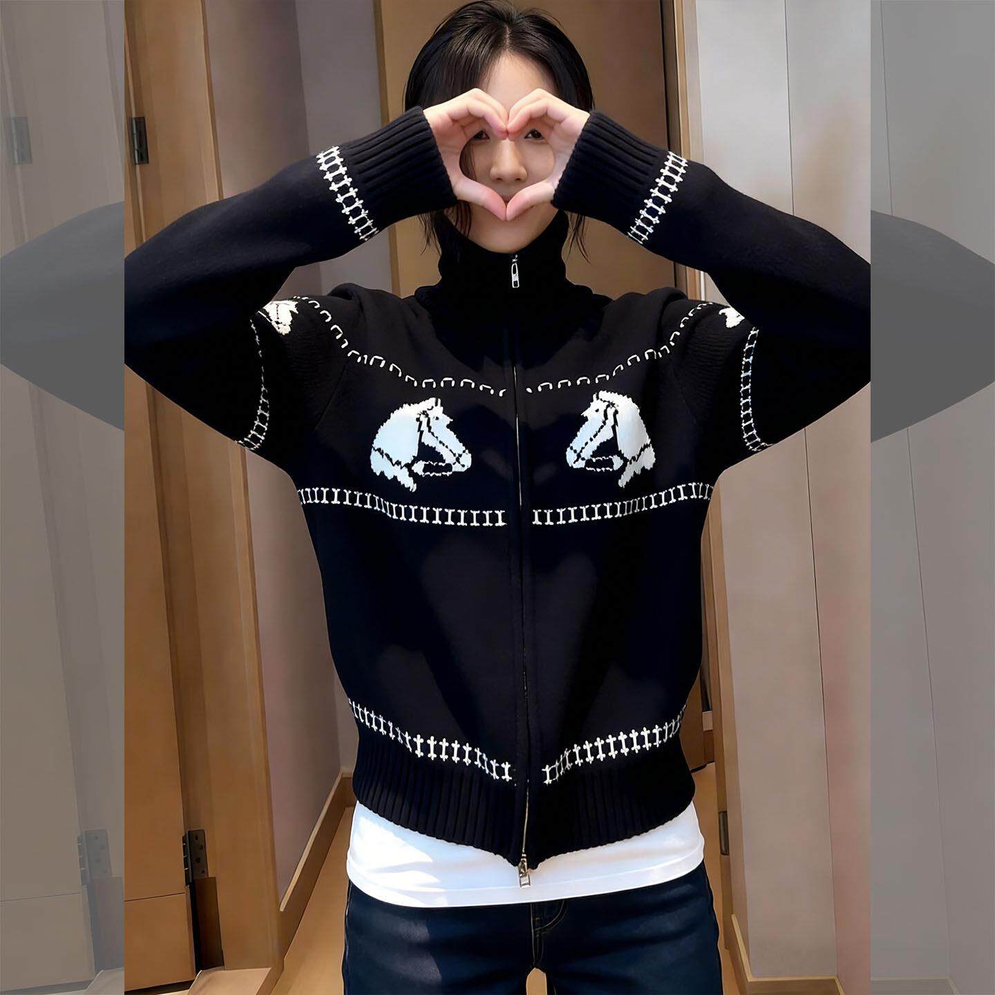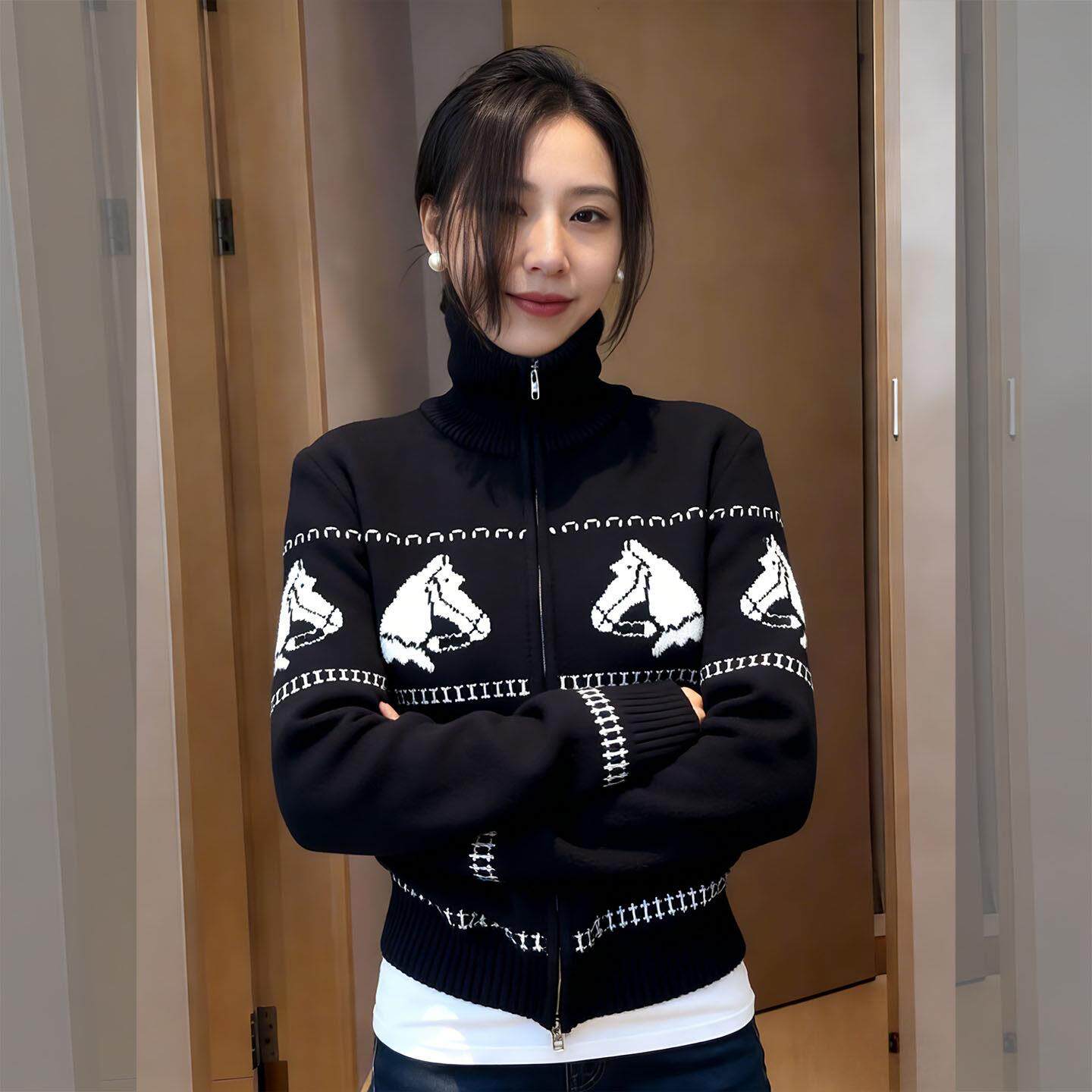 毛衣女款2026新款春季超好看韩系漂亮小香风高领黑色提花针织外套