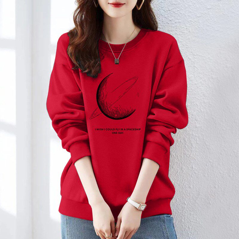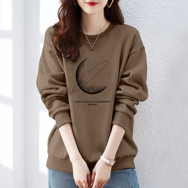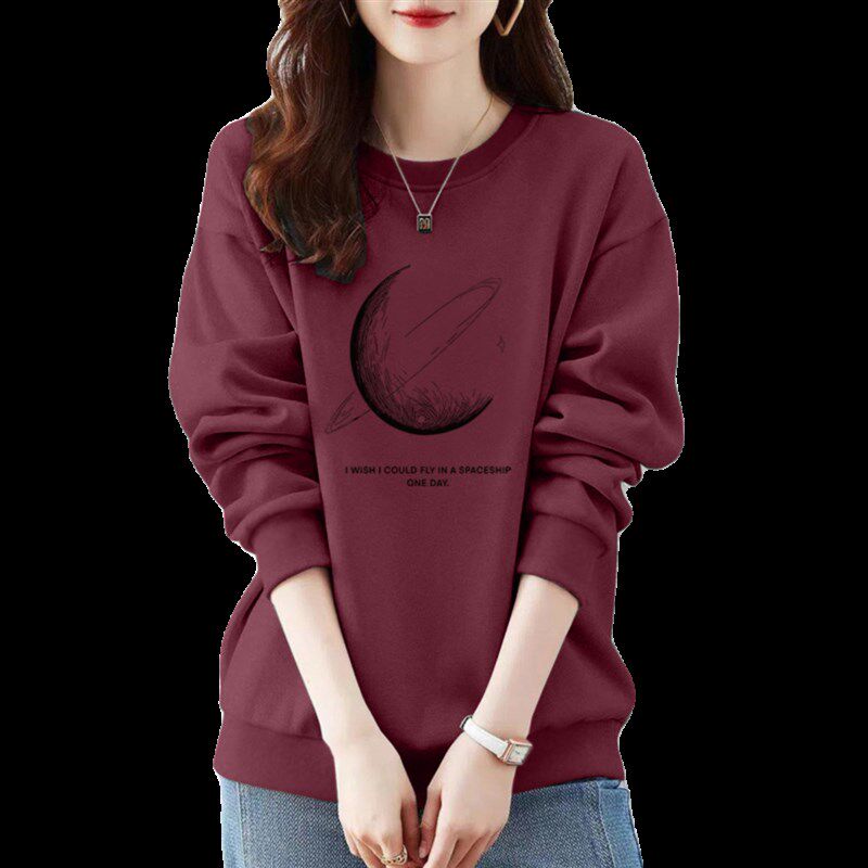 气质女装纯棉卫衣女加绒加厚秋冬季简约高级感印花休Y闲薄款上衣