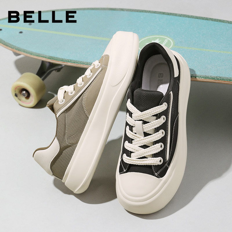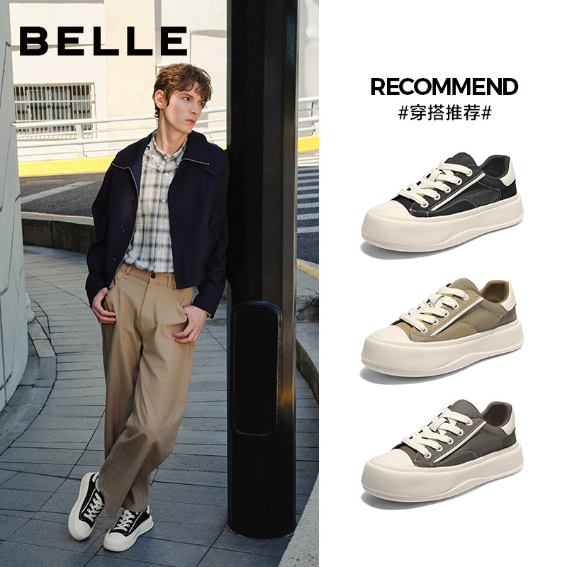 百丽男士轻便舒适软底休闲板鞋男春新透气厚底增高帆布鞋子A2017