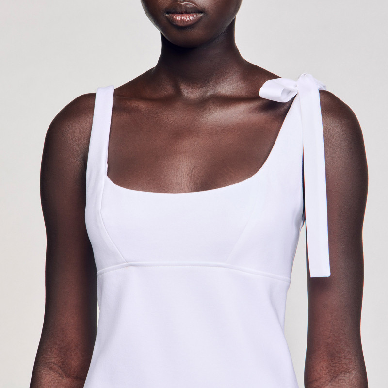 311线报网描述:肩带蝴蝶结设计优雅荷叶边裙摆