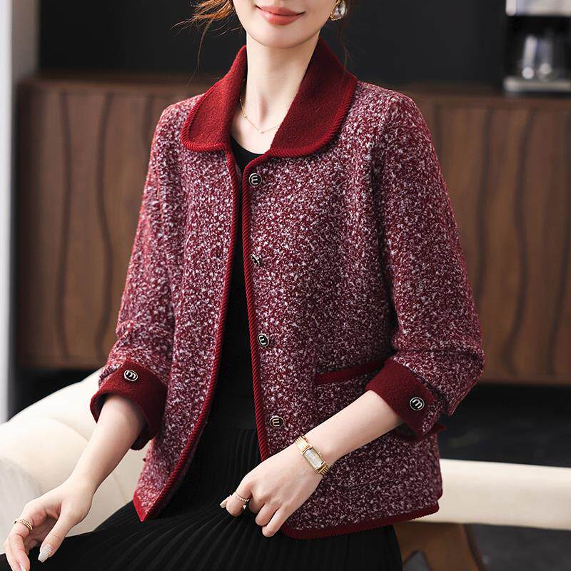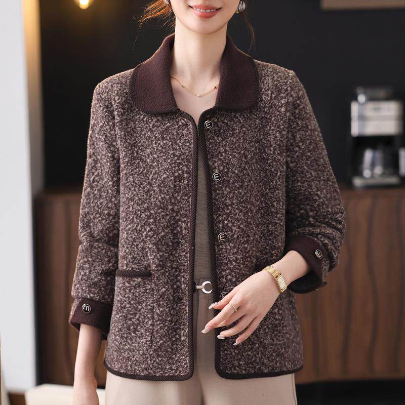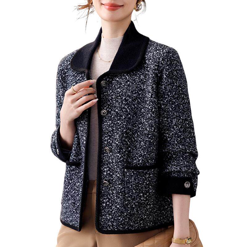 妈妈春装外套翻领长袖上衣时尚休闲中老年女士小个子开衫2025新款