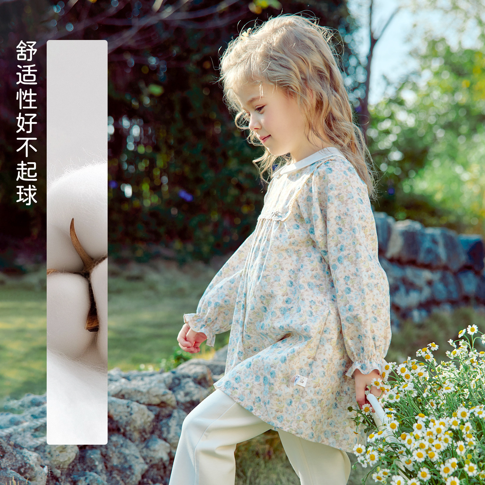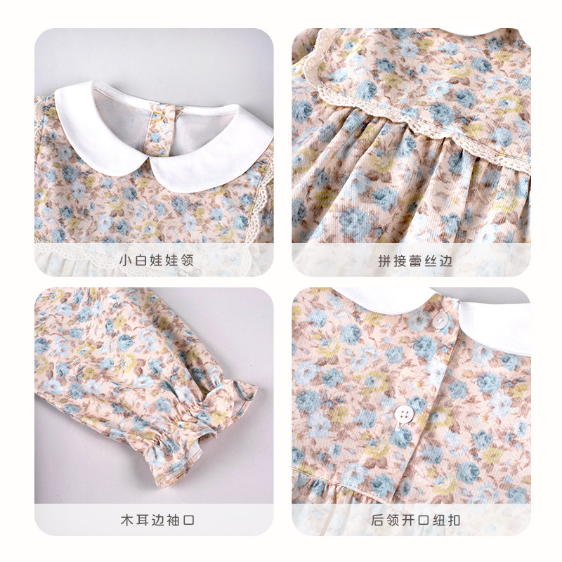 【SEQB小象Q比新款】甜美公主风女童碎花连衣裙春夏长袖娃娃领