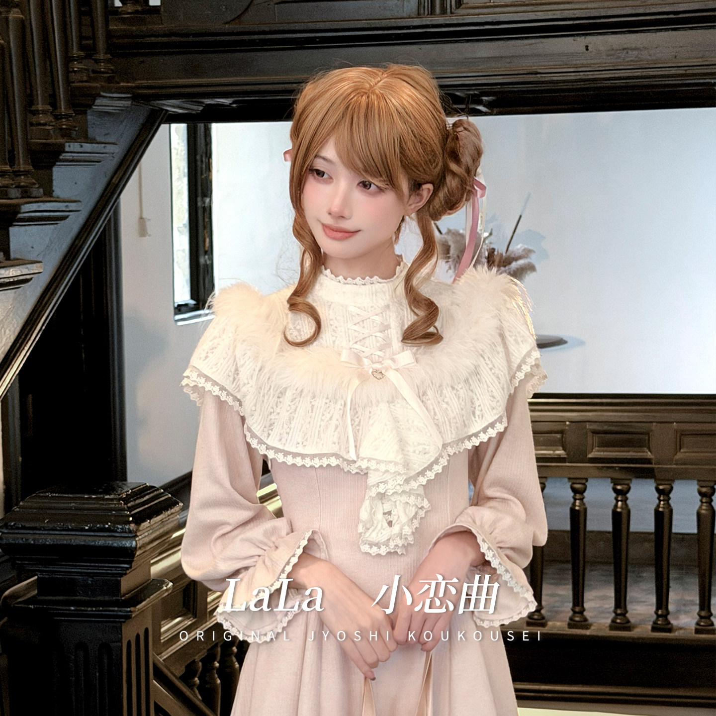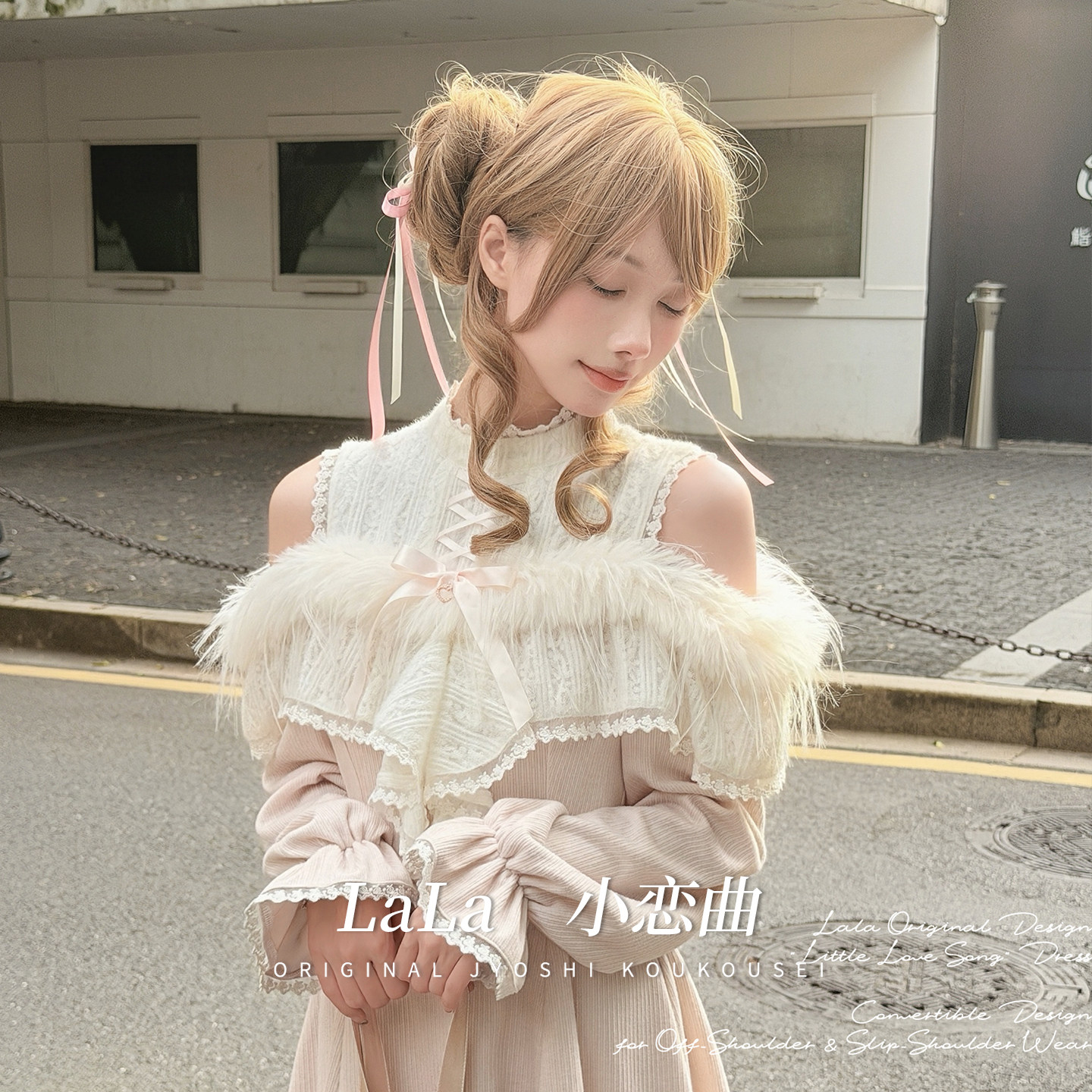 啦啦酱 小恋曲 原创设计奈奈风清楚系甜美露肩两穿长袖针织连衣裙