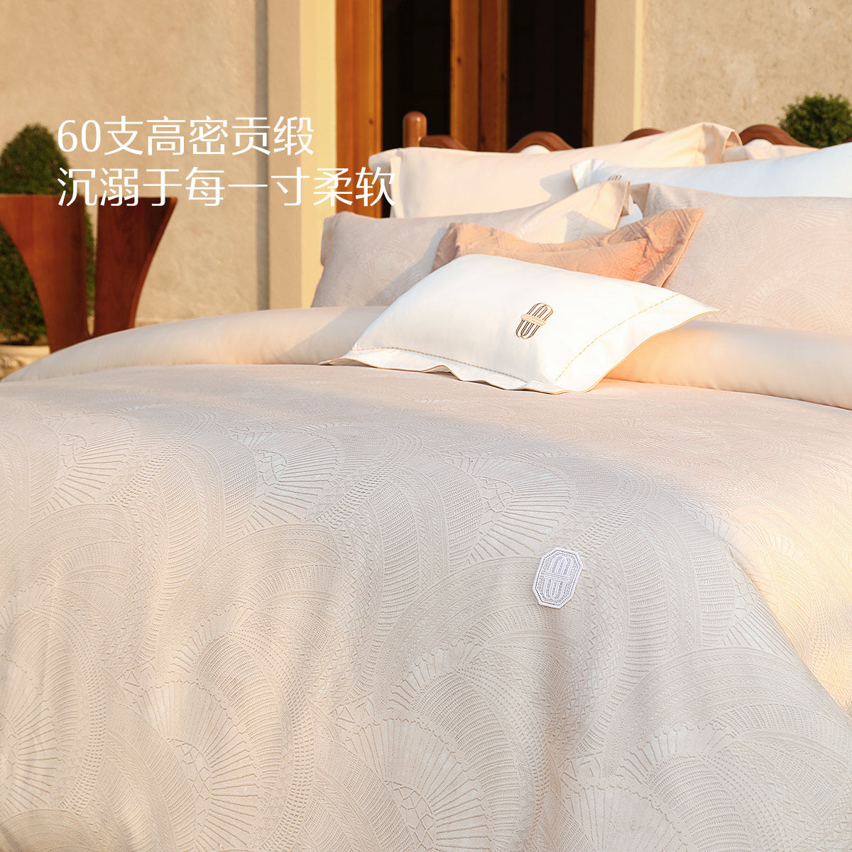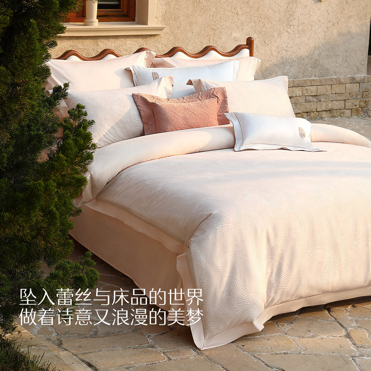 水星家纺60支新疆长绒棉四件套抗菌法式纯棉被套床单轻奢四季床品