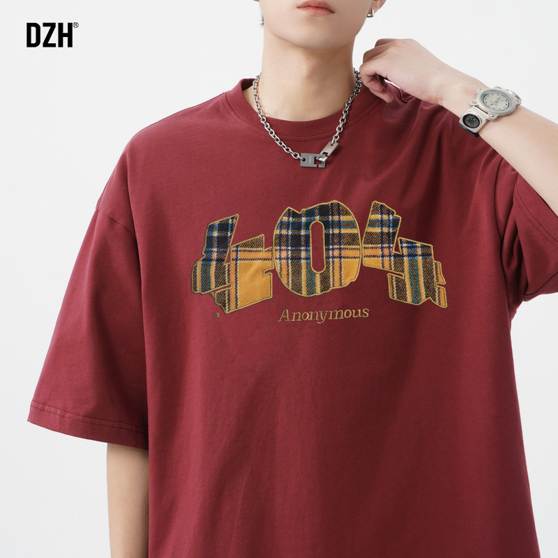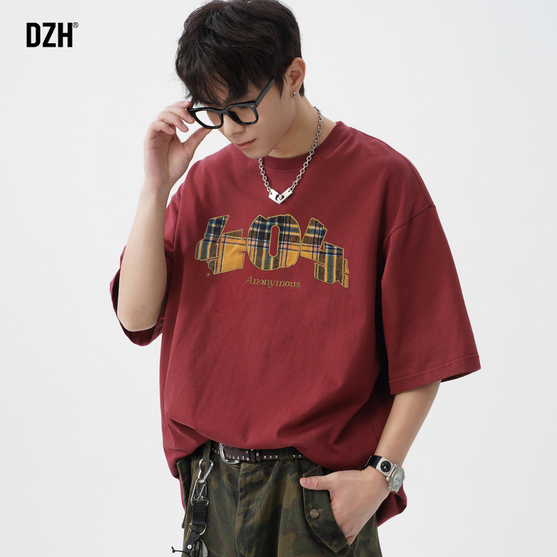 青少年红色短袖t恤男2026新款纯棉刺绣上衣衣服男款潮牌夏季半袖