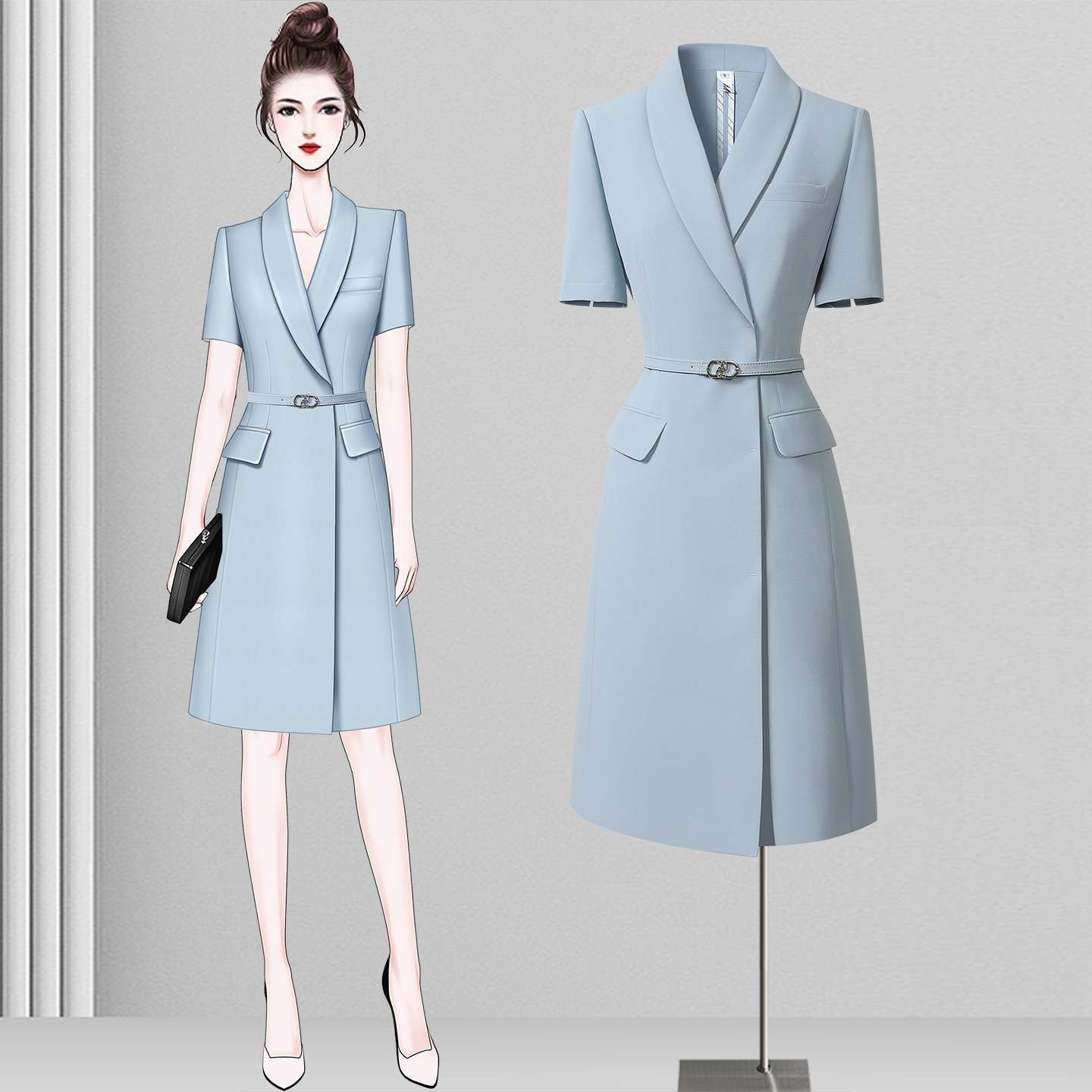 高级感西装裙连衣裙职业女夏气质收腰职场通勤上班导购前台工作服