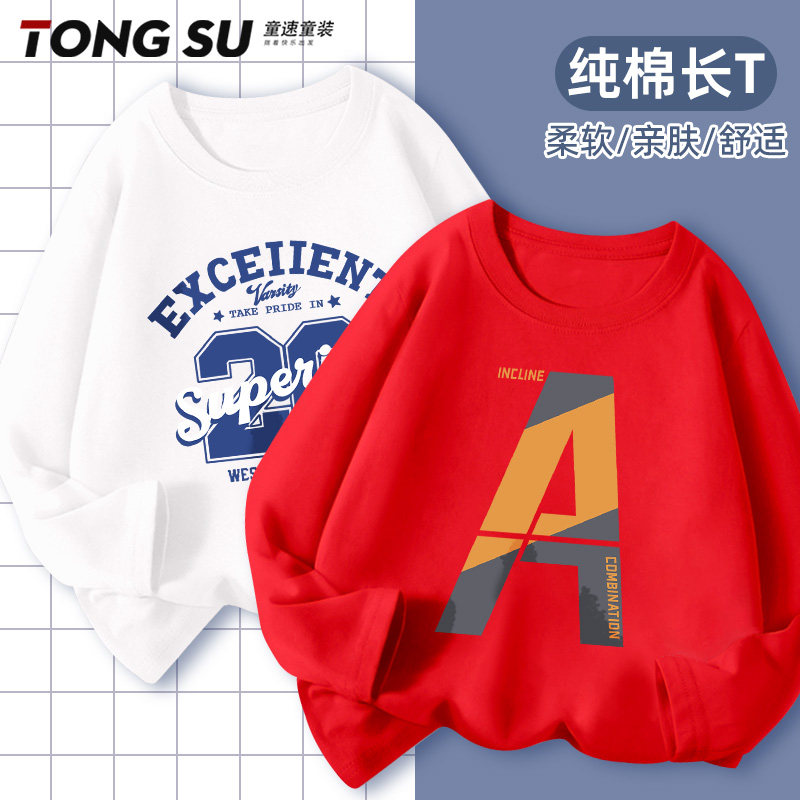 男童长袖t恤纯棉2026新款春秋款痞帅风上衣男孩潮酷体恤儿童春装