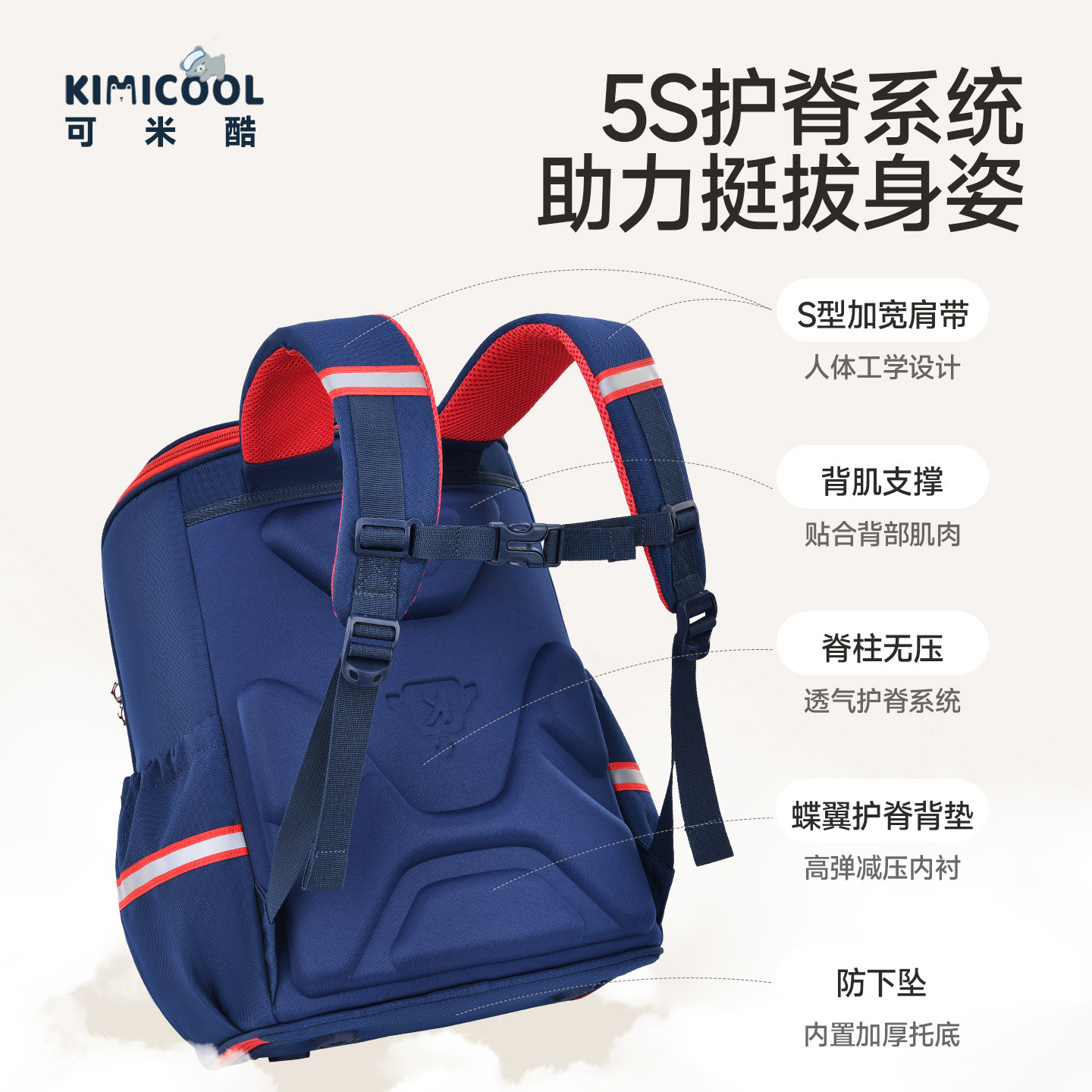 311线报网描述:5S科学护脊系统轻盈体感云感背负大容量收纳