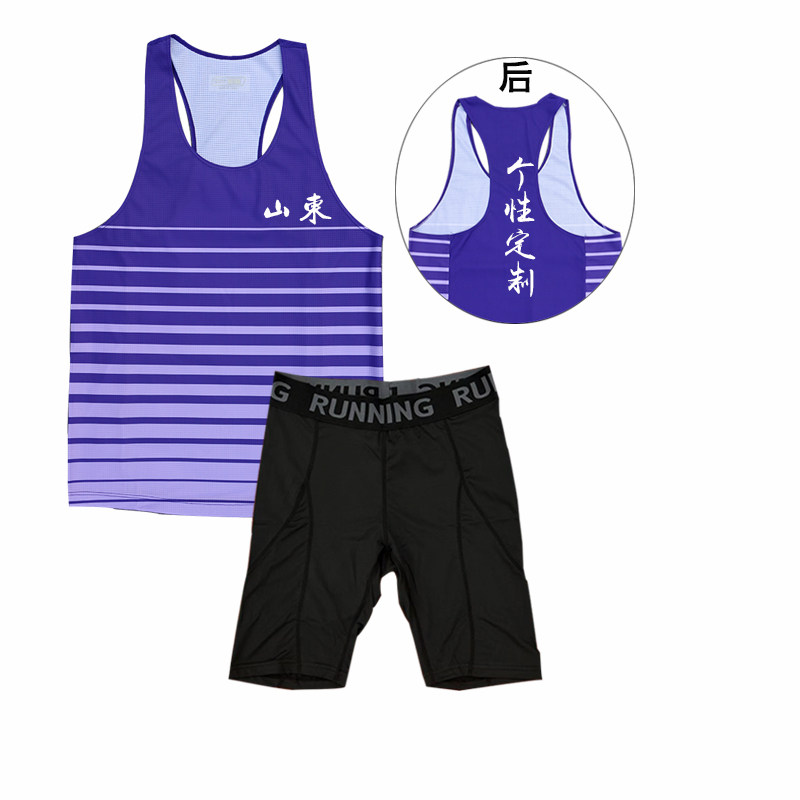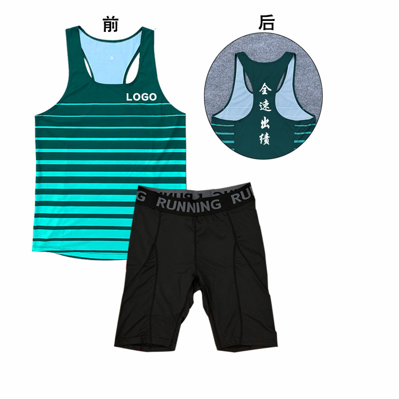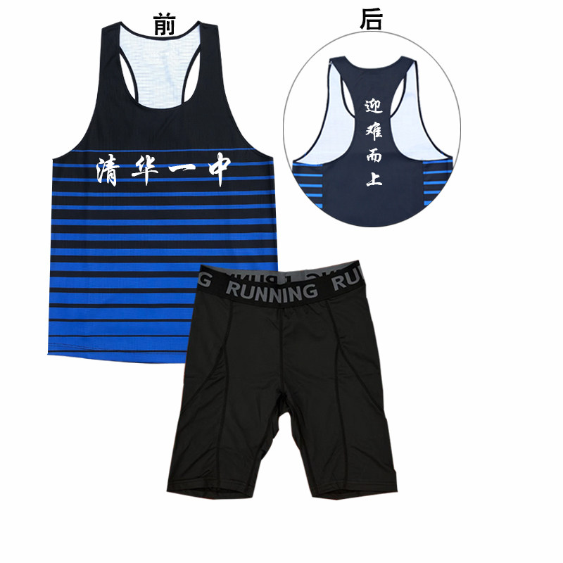 弹力田径服套装男女体育生训练服跑步背心短弹定制体考比赛服速干