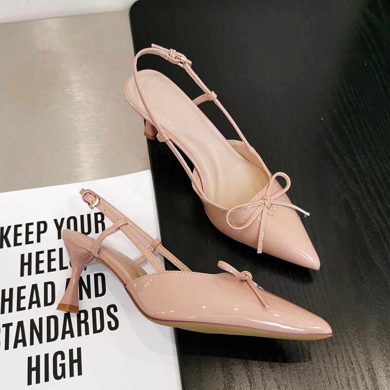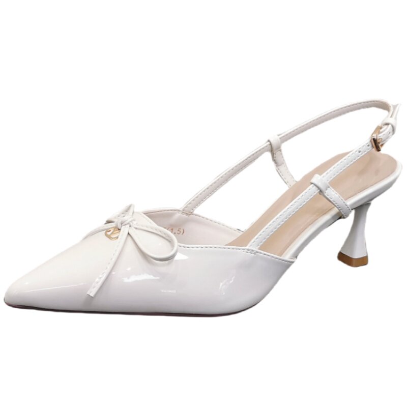 漆皮蝴蝶结尖头细跟高跟鞋女2026春夏新款配裙子法式后空包头凉鞋