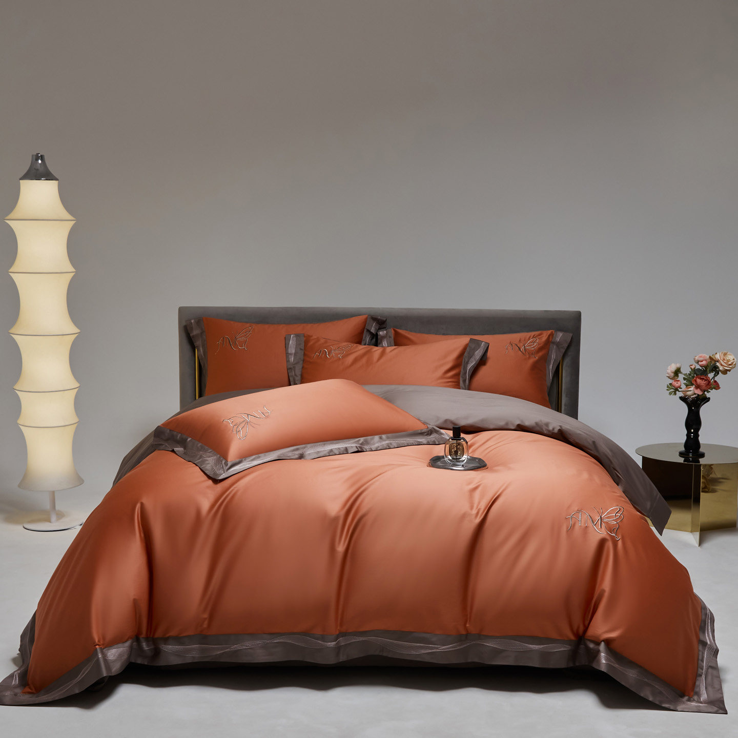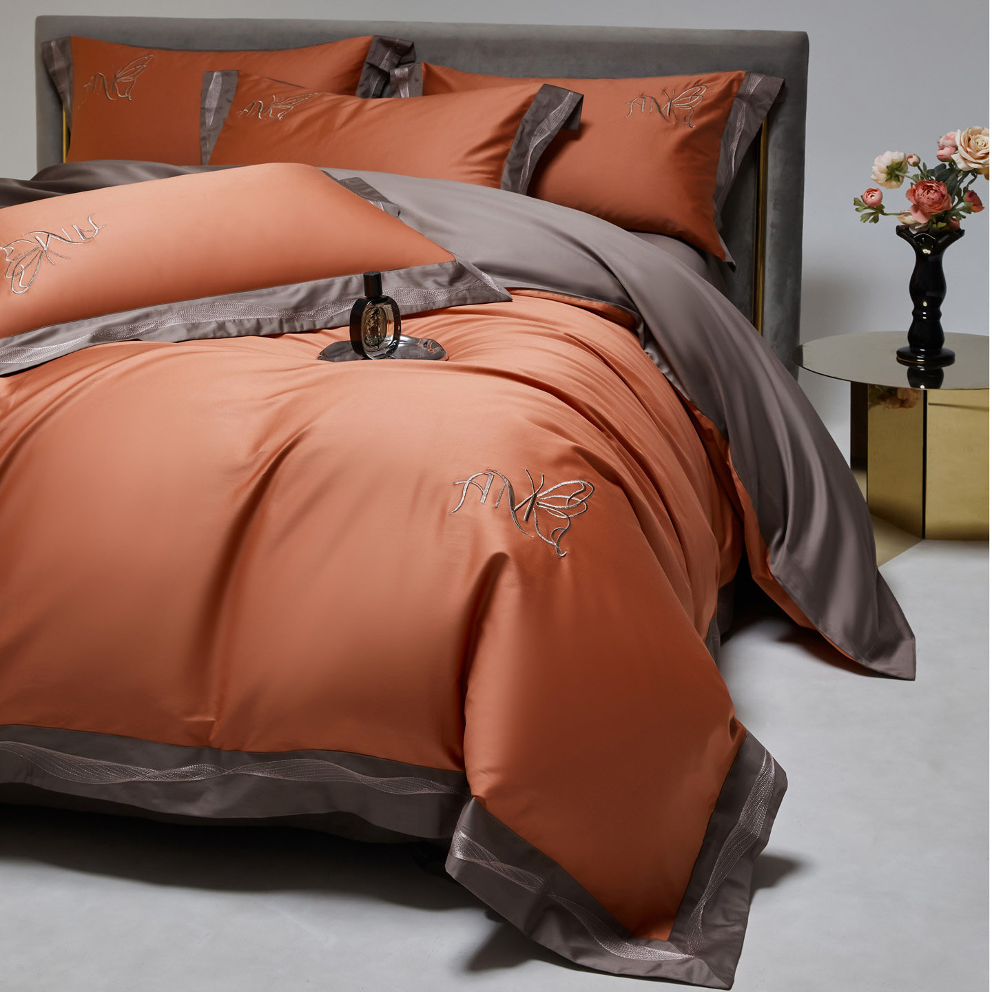 澳棉刺绣床上四件套纯棉轻奢高级感主卧室大红色结婚喜庆被套全棉