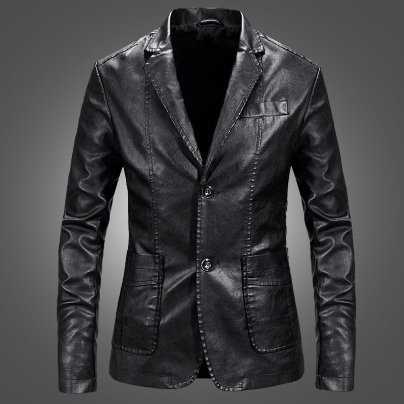 秋冬季pu皮衣男款修身薄款皮西装休闲夹克西服韩版外套皮上衣春装