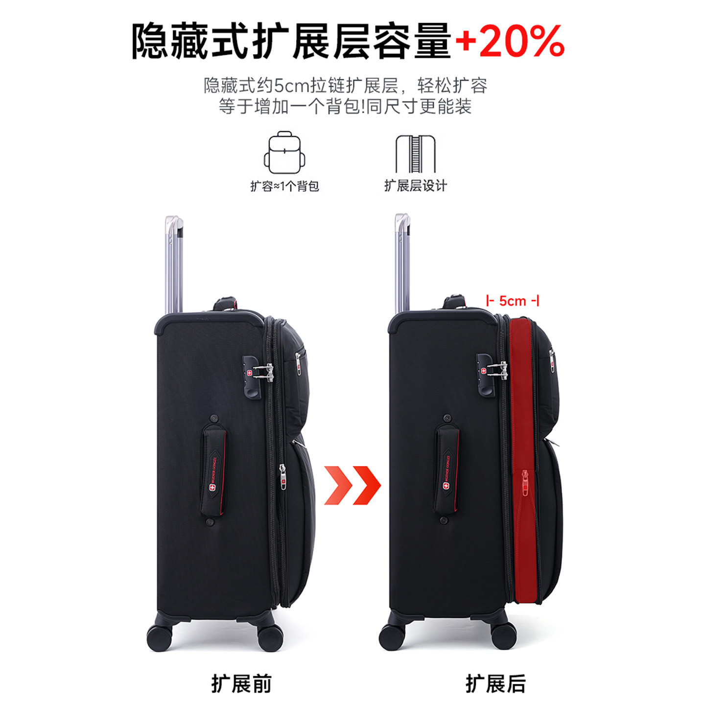 瑞士军刀牛津布行李箱超轻拉杆箱24寸帆布大容量旅行箱女20寸登机