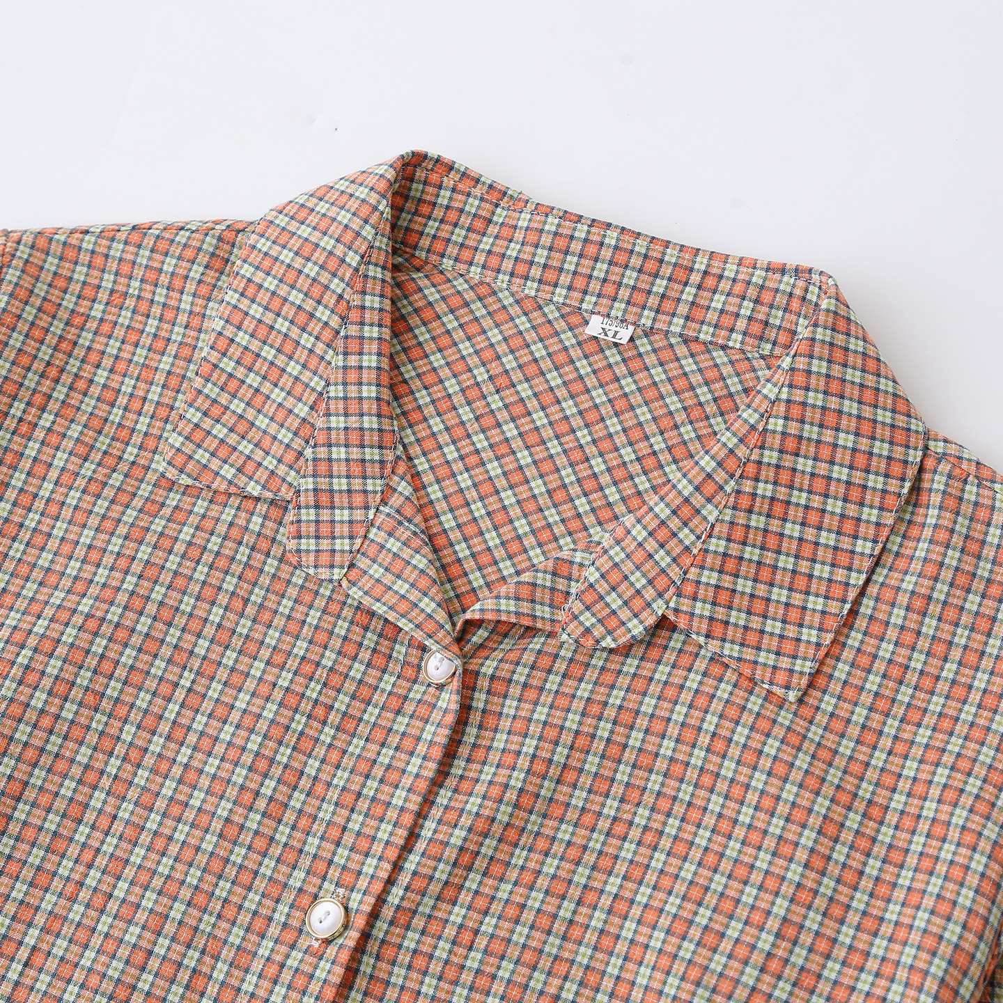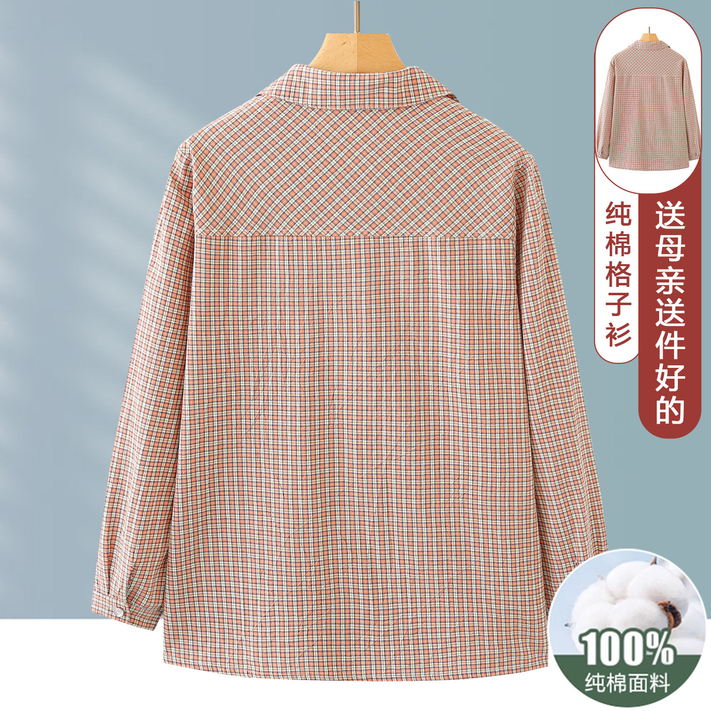 格子衬衫女款妈妈春装100%纯棉上衣宽松休闲中老年春秋款全棉衣服