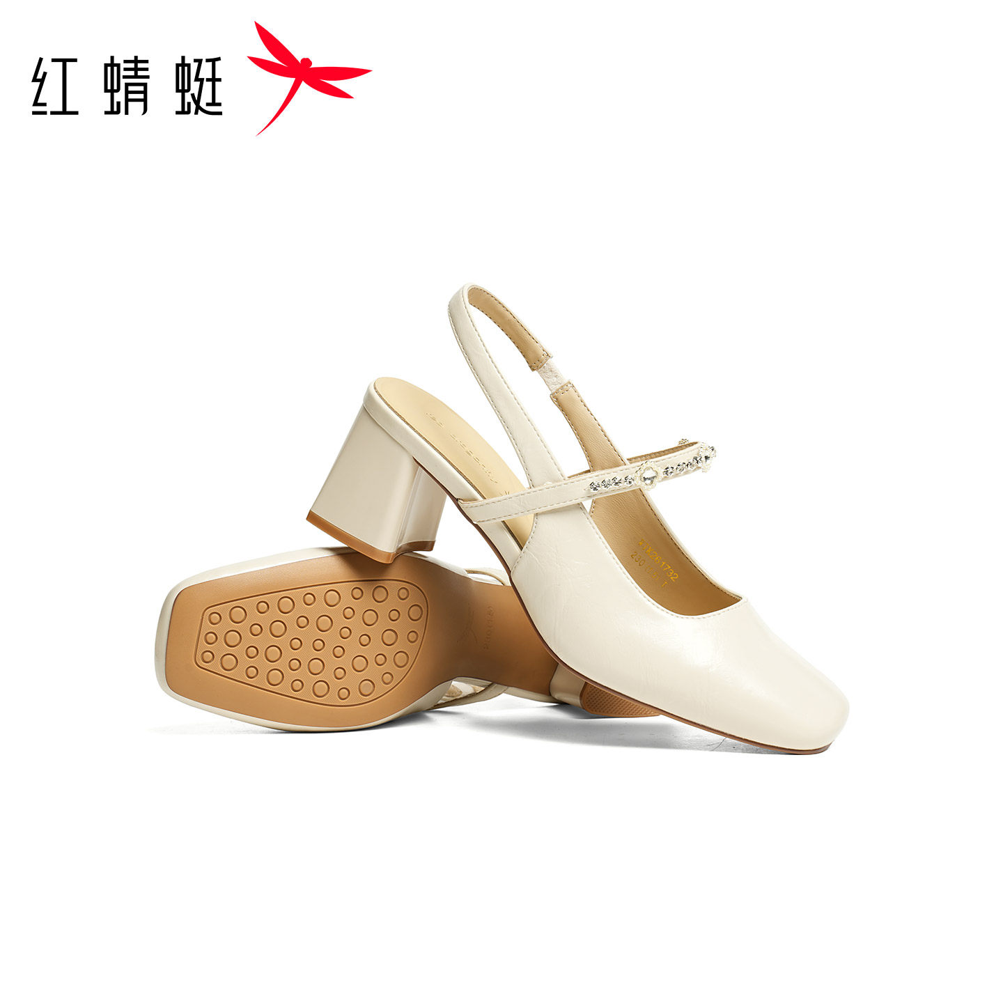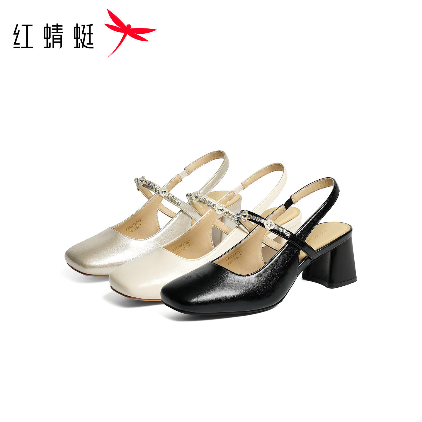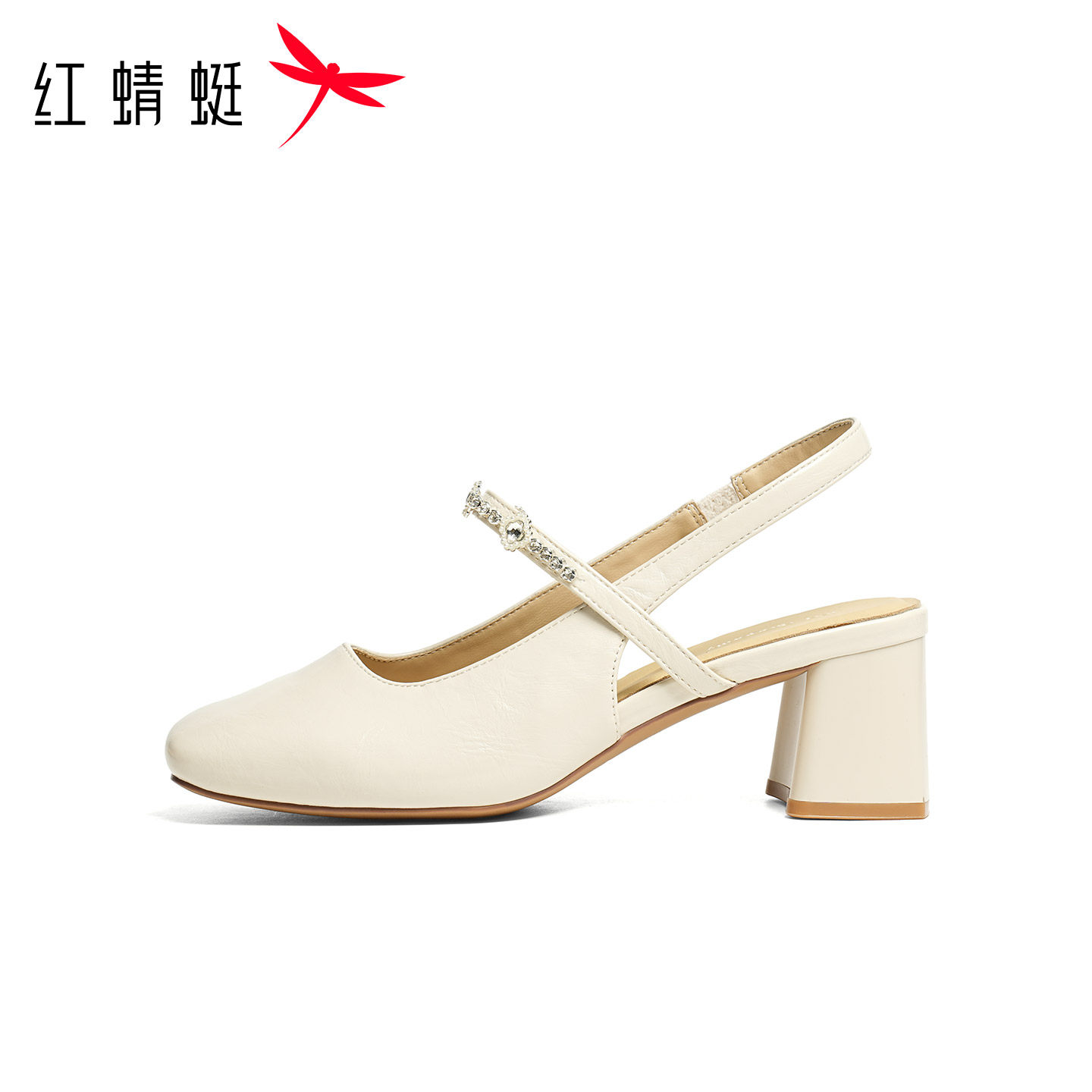 红蜻蜓包头凉鞋女2026春夏季新款女鞋粗跟通勤高跟鞋气质后空单鞋
