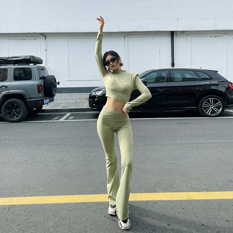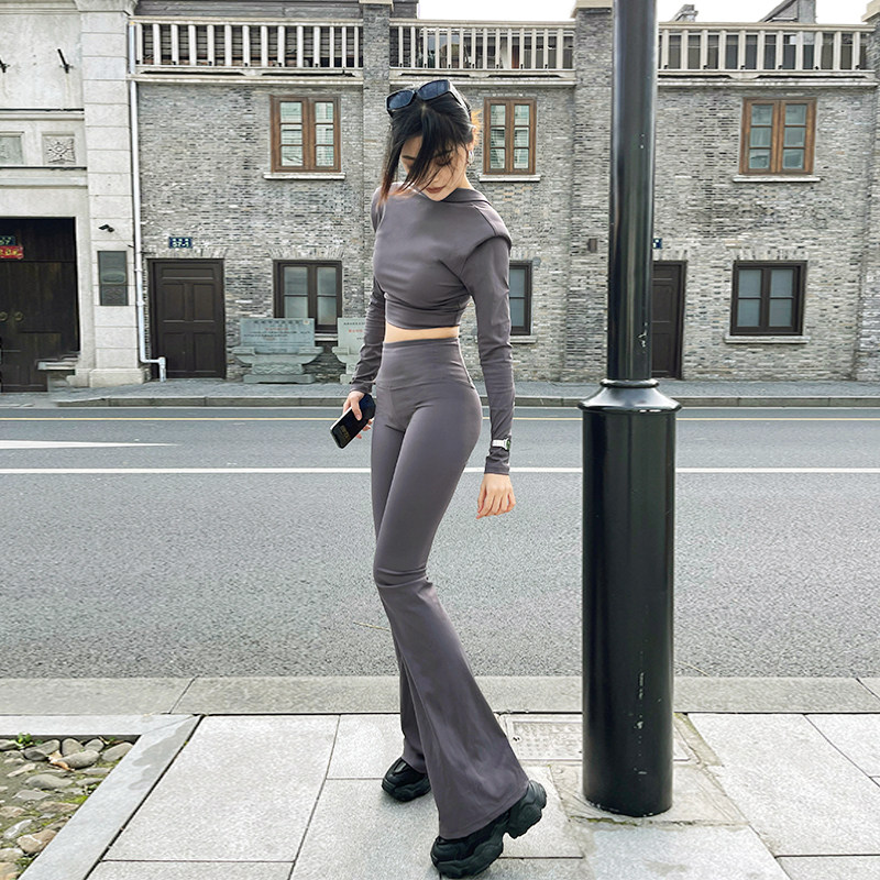 VJISHA超模裤加长瑜伽裤显瘦高腰微喇裤拖地喇叭裤弹力休闲裤欧美