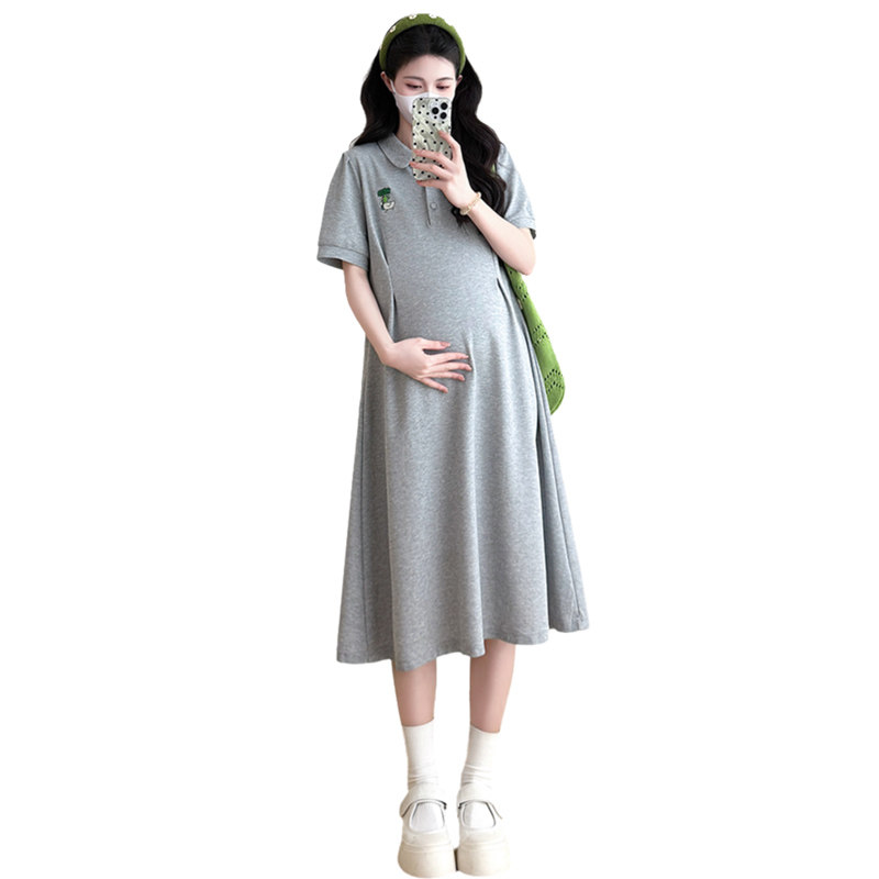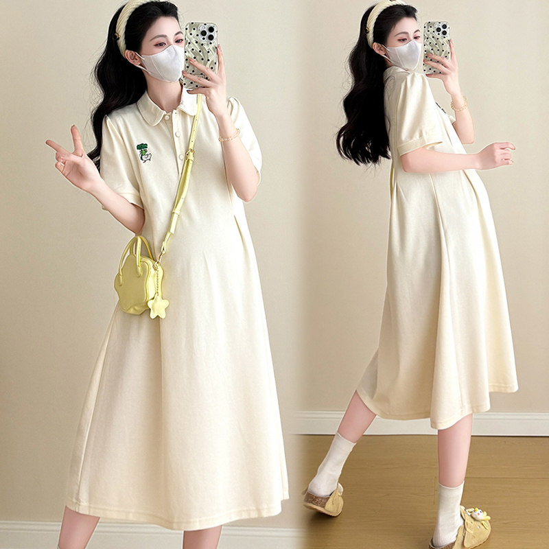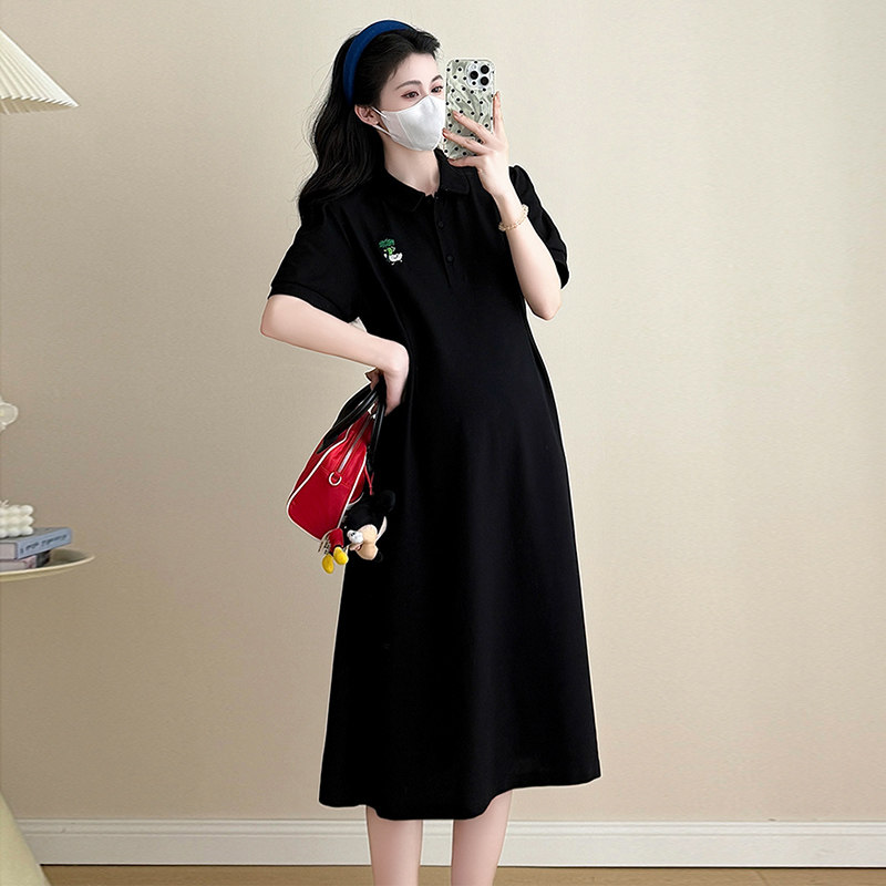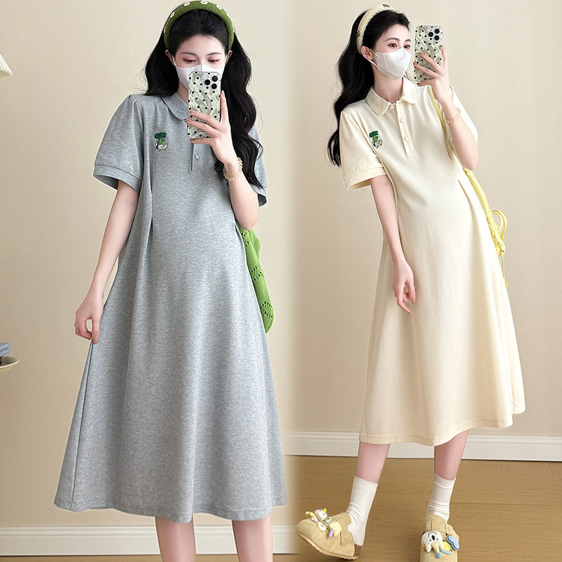 孕妇夏装连衣裙中长款2026新款孕妇装宽松polo领T恤裙大码裙子女