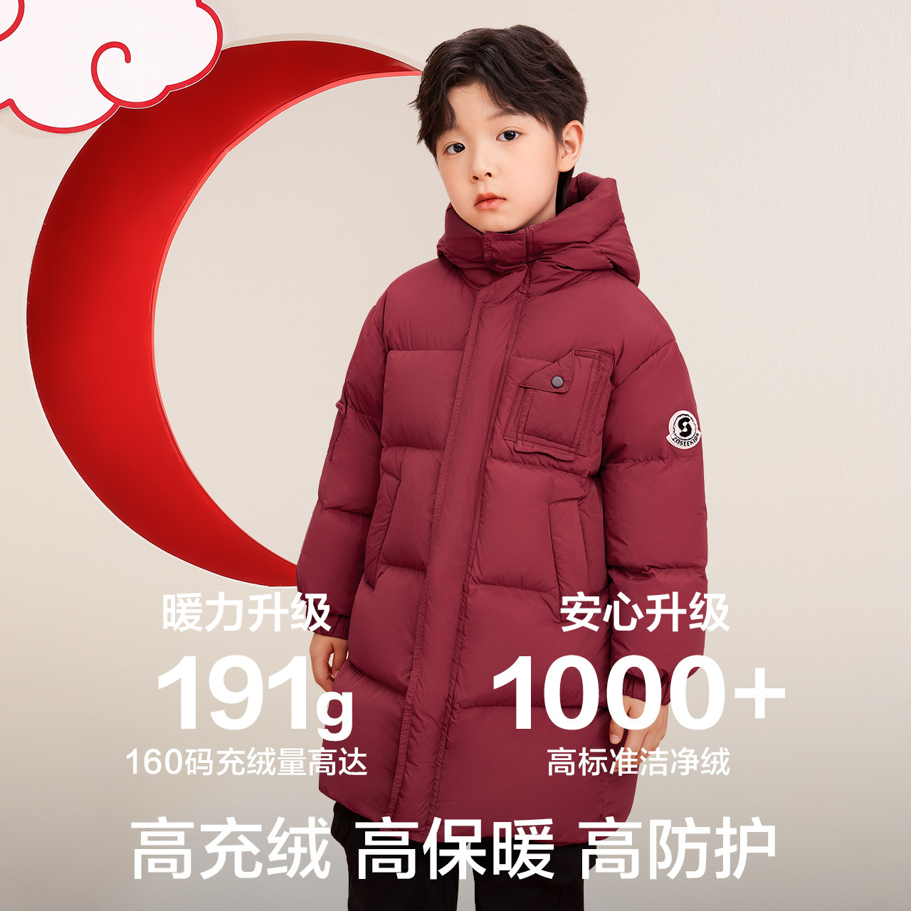 左西童装男童红色羽绒服中长款拜年服冬季加厚2026新款儿童外套潮