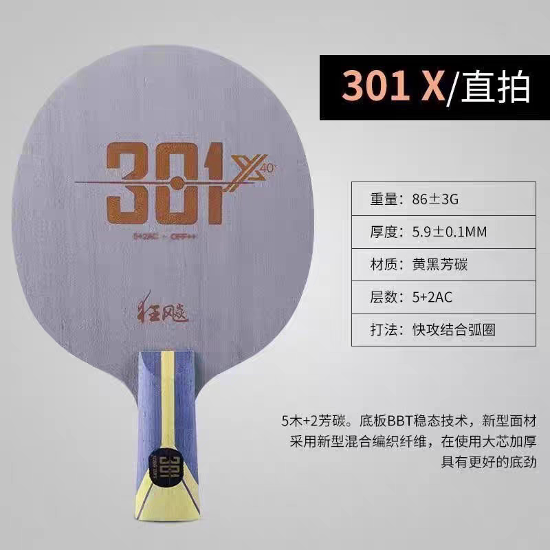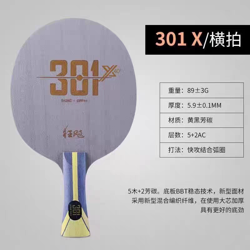 红双喜乒乓球拍底板狂飚301碳素7层劲极301X专业级黄黑芳碳乒乓拍
