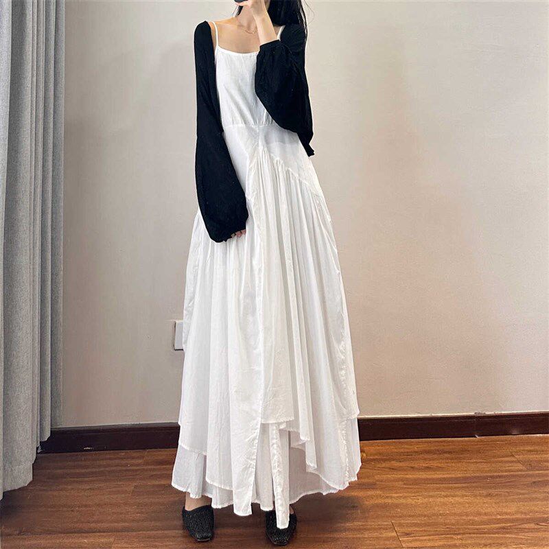 读衣术白色吊带裙夏女长款棉麻文艺长裙到脚踝宽松显瘦内搭连衣裙