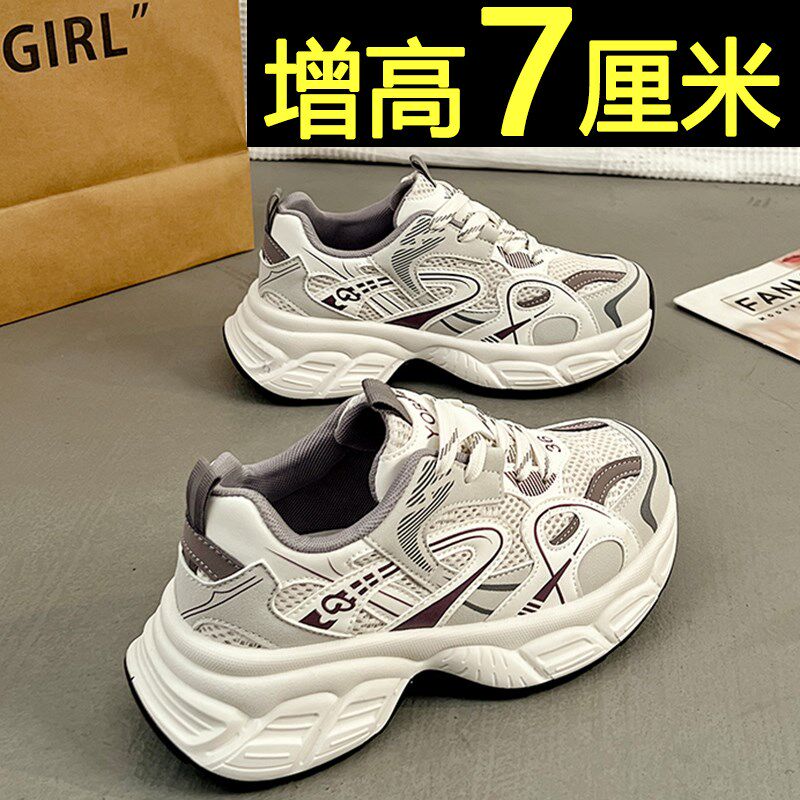 老爹鞋女款2025新款春夏季网z面透气厚底休闲运动鞋轻便内增高女