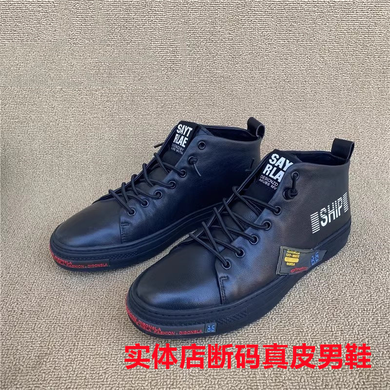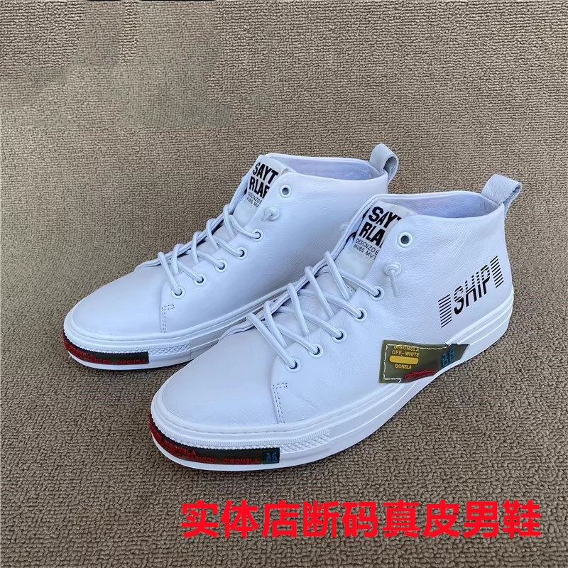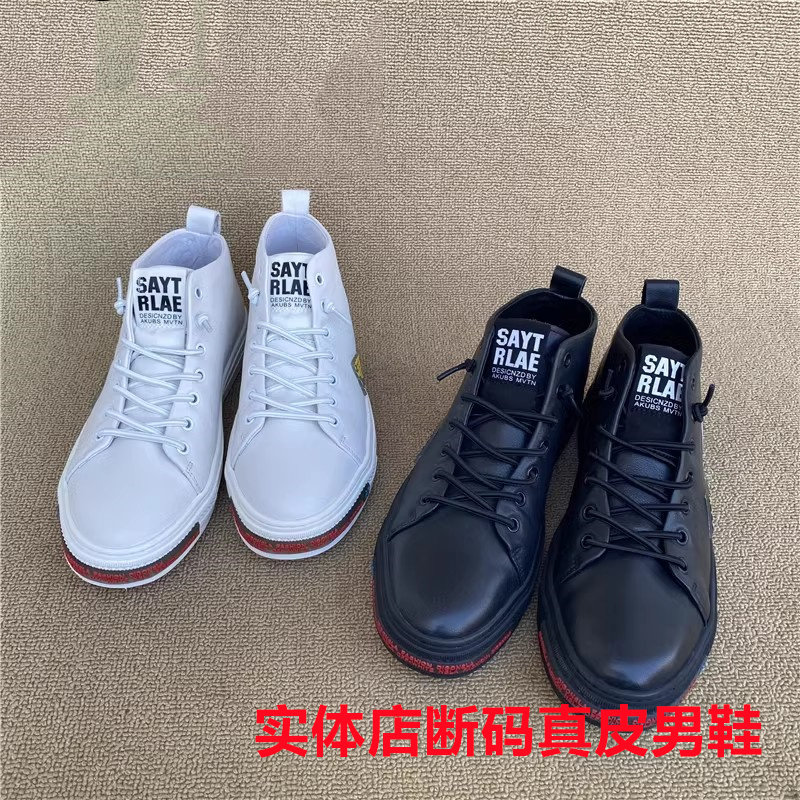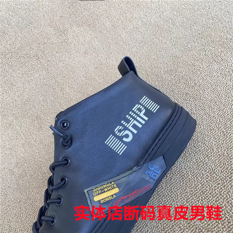 新款公牛撤柜正品男高帮鞋真皮头层牛皮圆头缝线小白鞋学生青年鞋